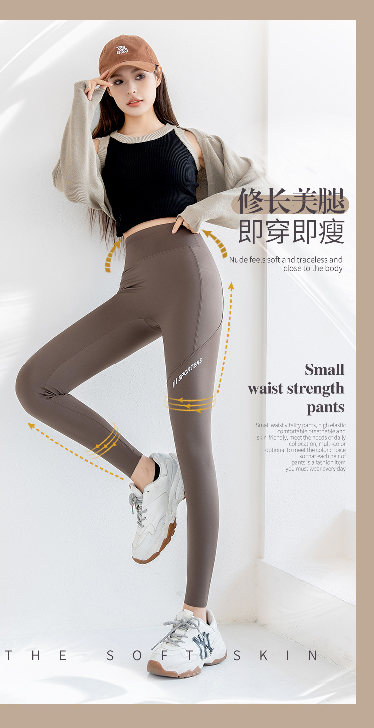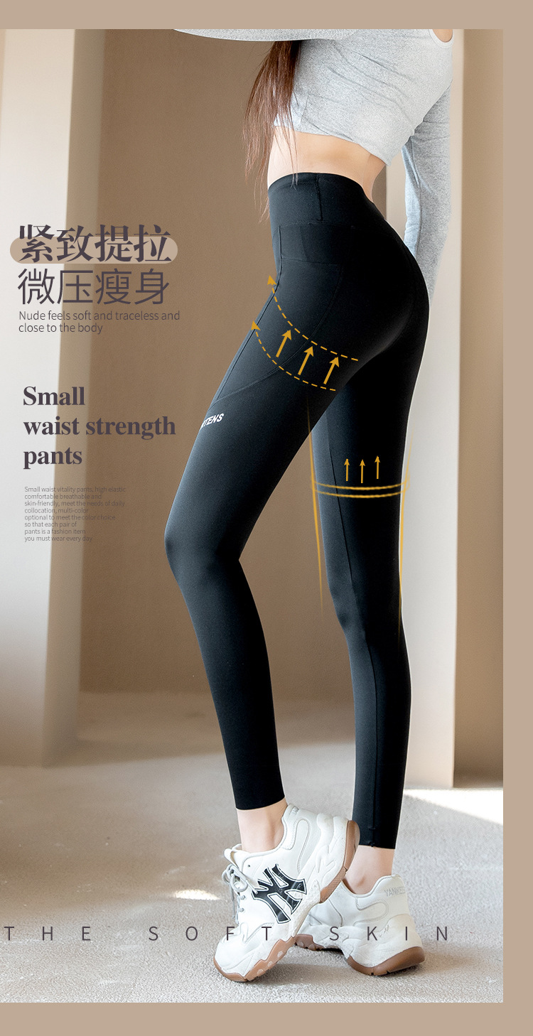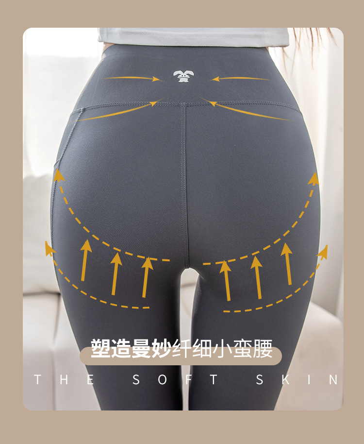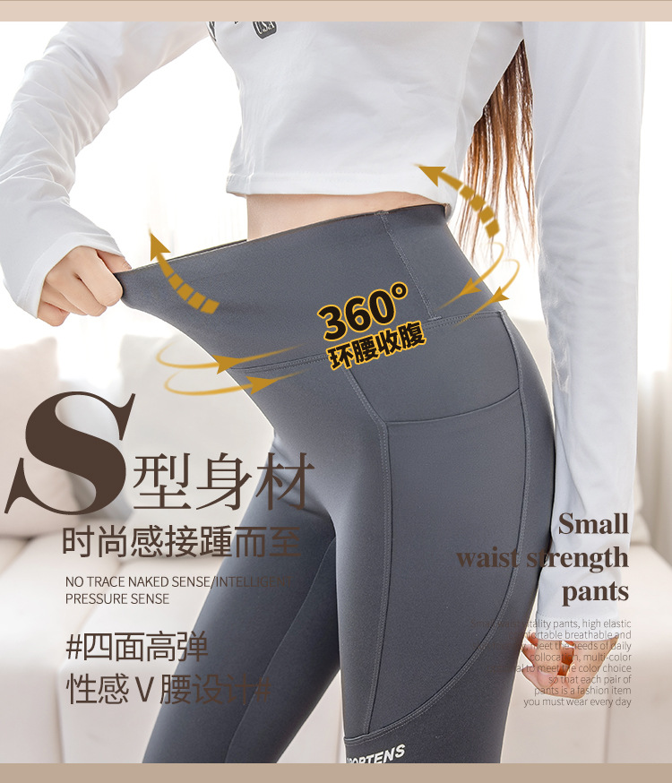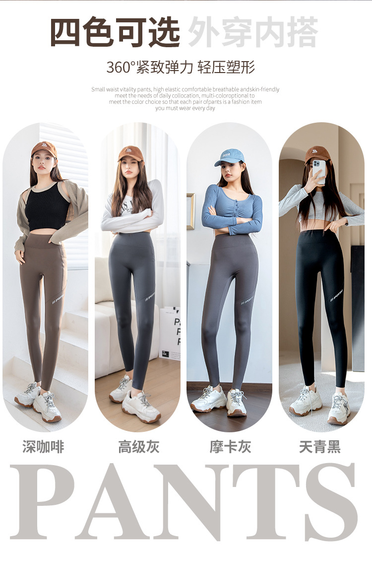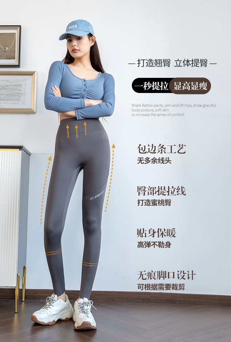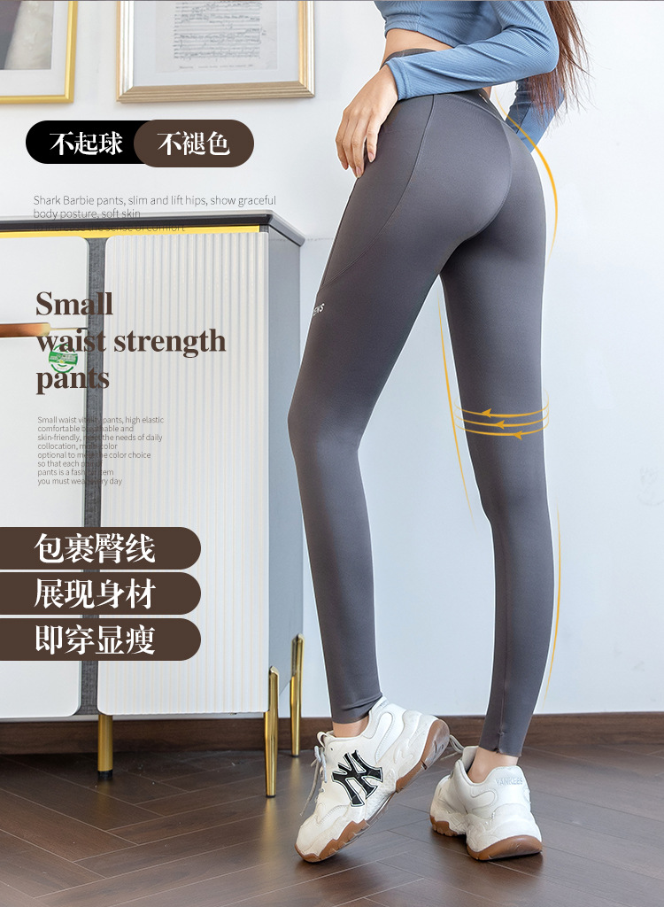 打底裤女外穿春秋高腰提臀紧身裤瑜伽运动健身芭比口袋鲨鱼裤薄款