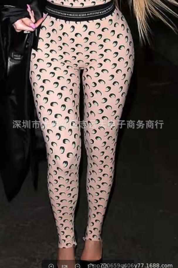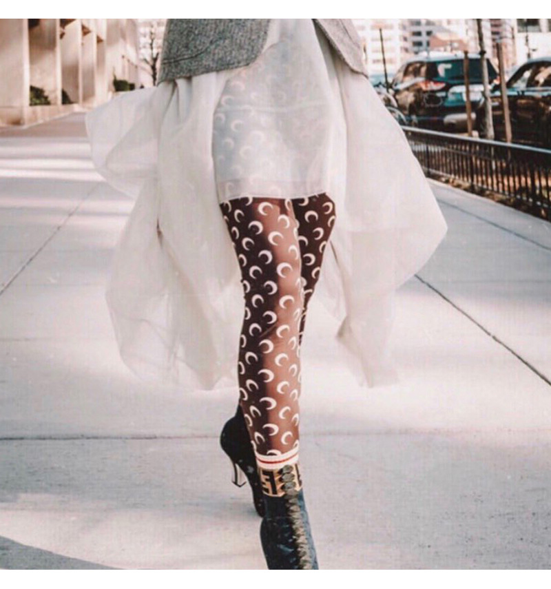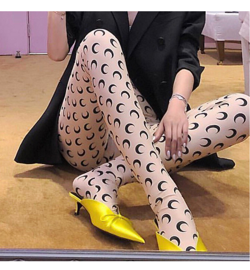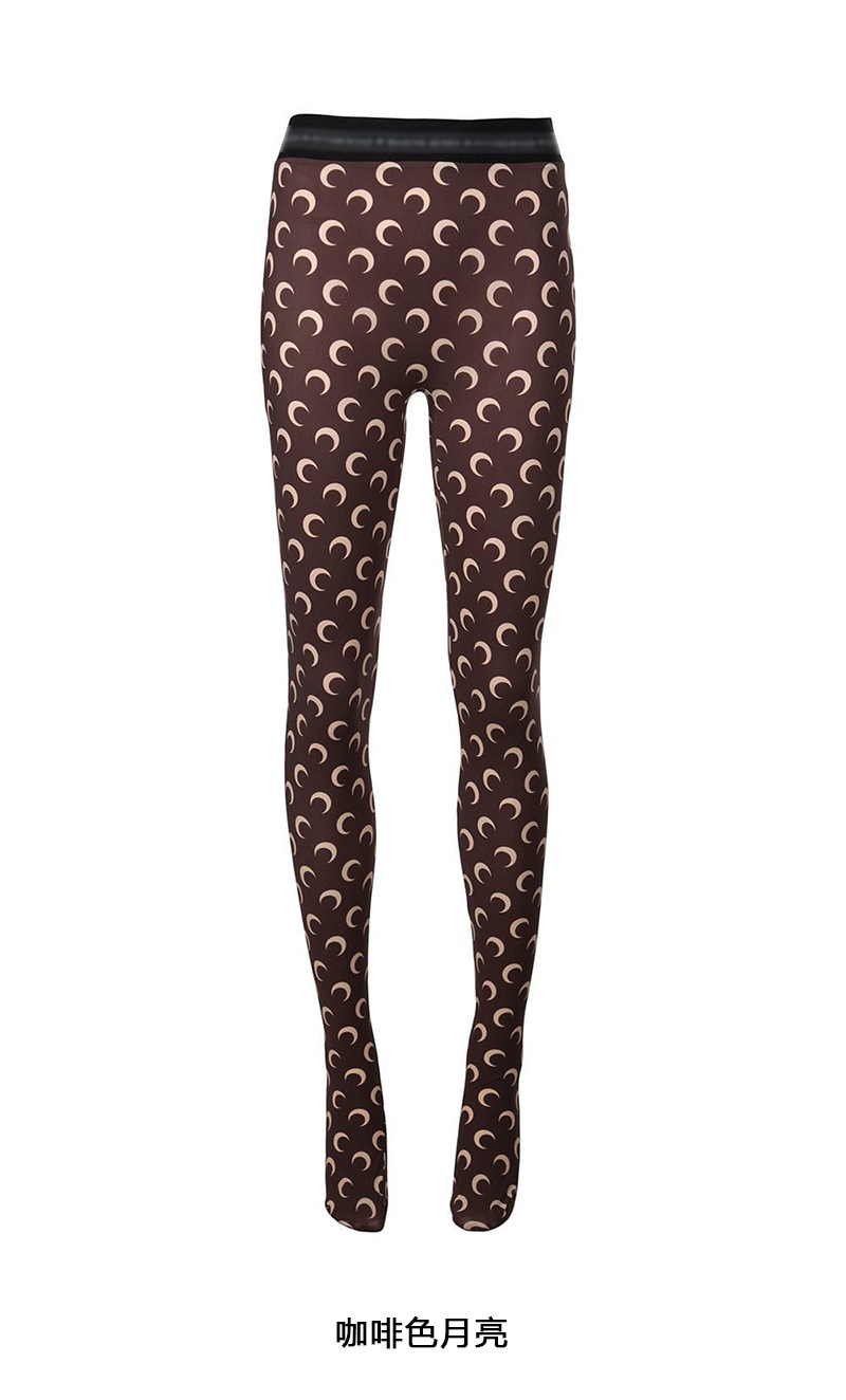 网红明星同款月亮印花长裤芭比无痕薄夏九分紧身打底裤女神袜子潮