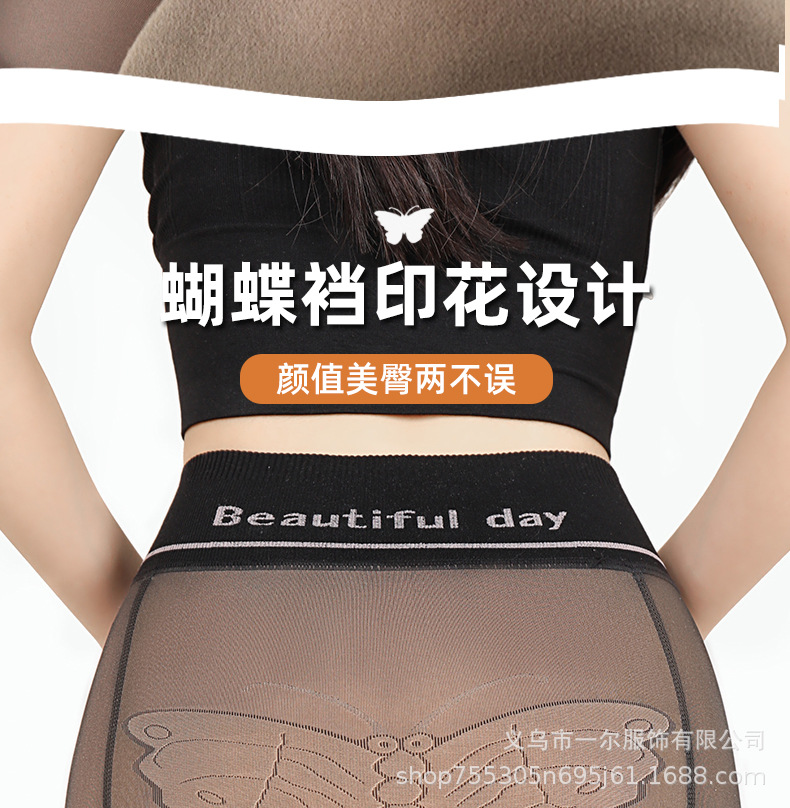 蝴蝶裆真透肤黑丝小个子加绒加厚秋冬一体打底裤女连裤袜黑透肤