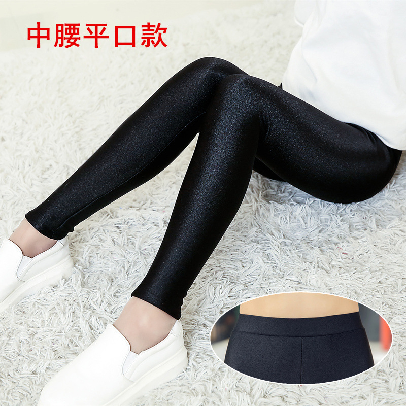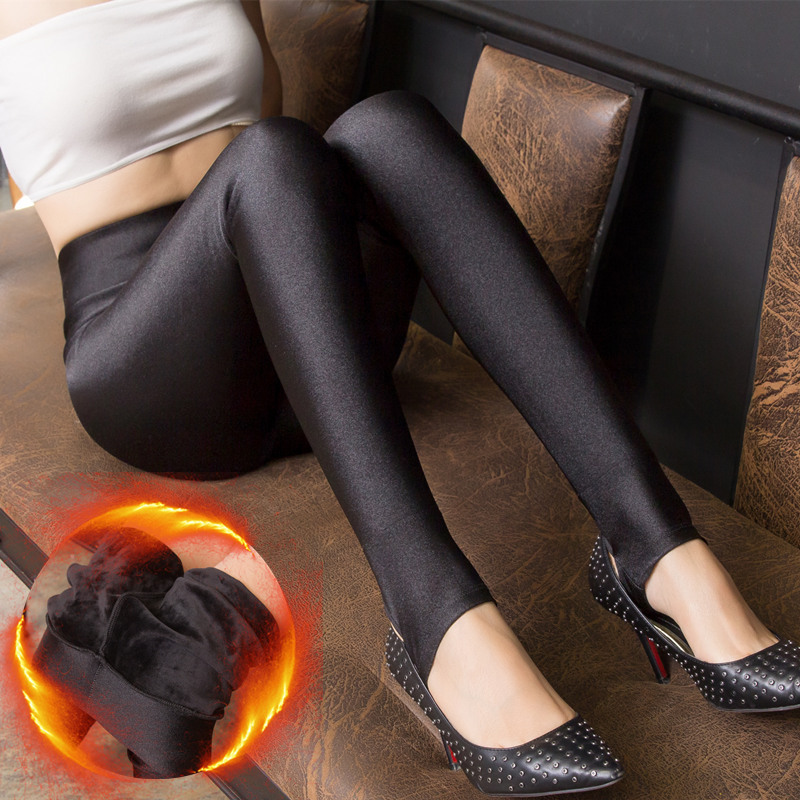 秋冬款打底裤女外穿加绒加厚光泽裤高腰踩脚胖mm大码紧身小脚长裤
