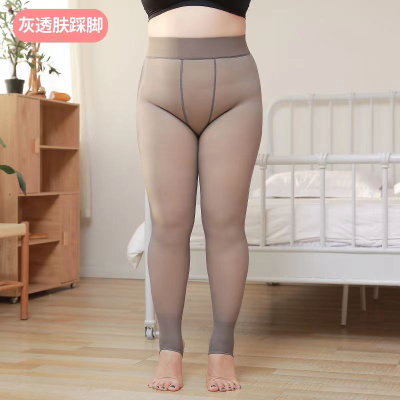 特大码透肤裤加绒加厚260斤打底裤假透肉一体裤保暖胖M加肥连裤袜