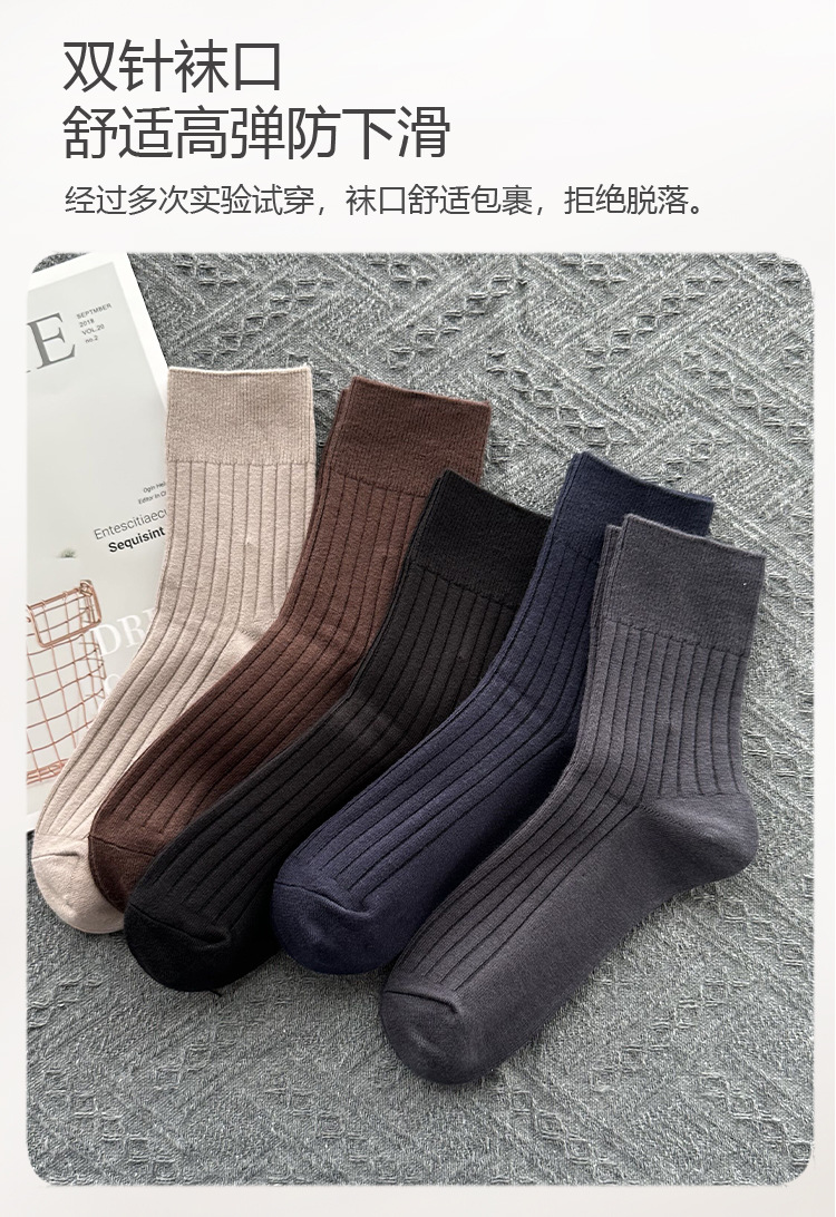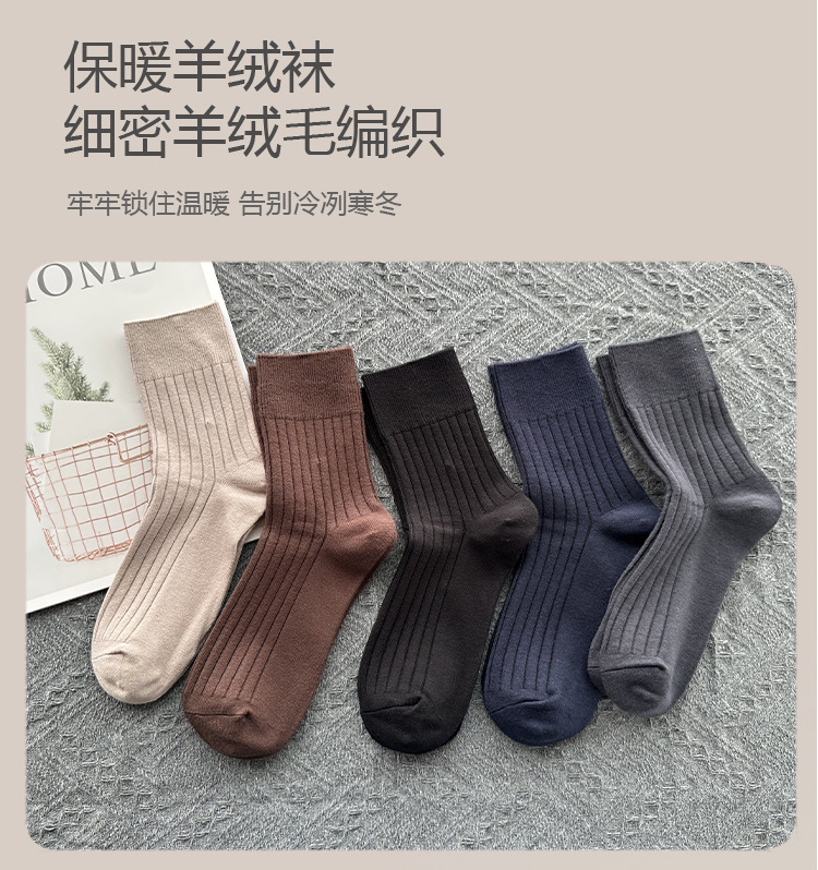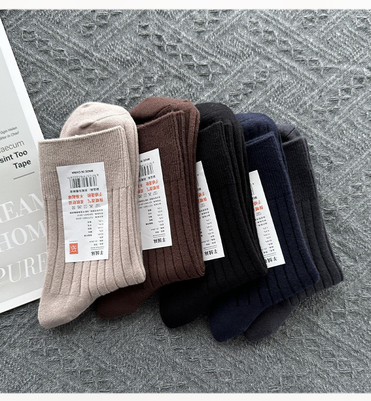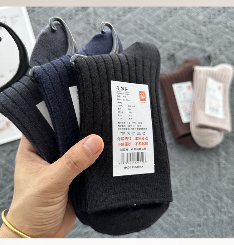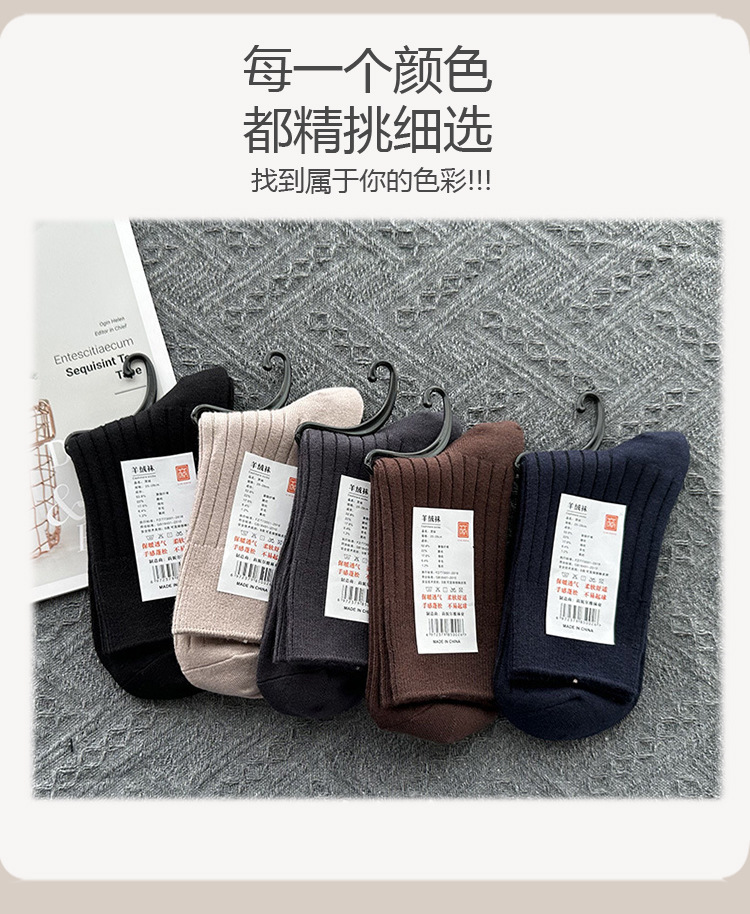 羊毛长筒袜子男士秋冬新款 诸暨男袜纯色透气 加厚保暖中筒羊绒袜