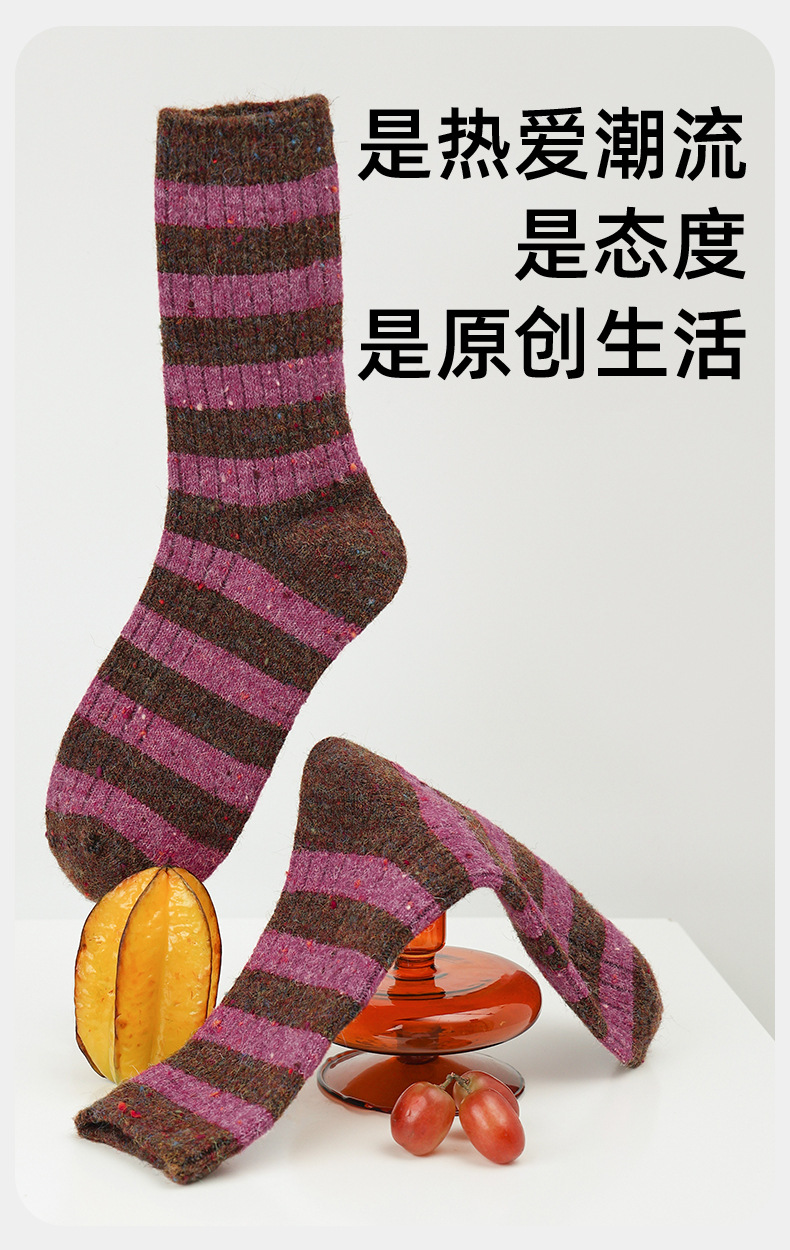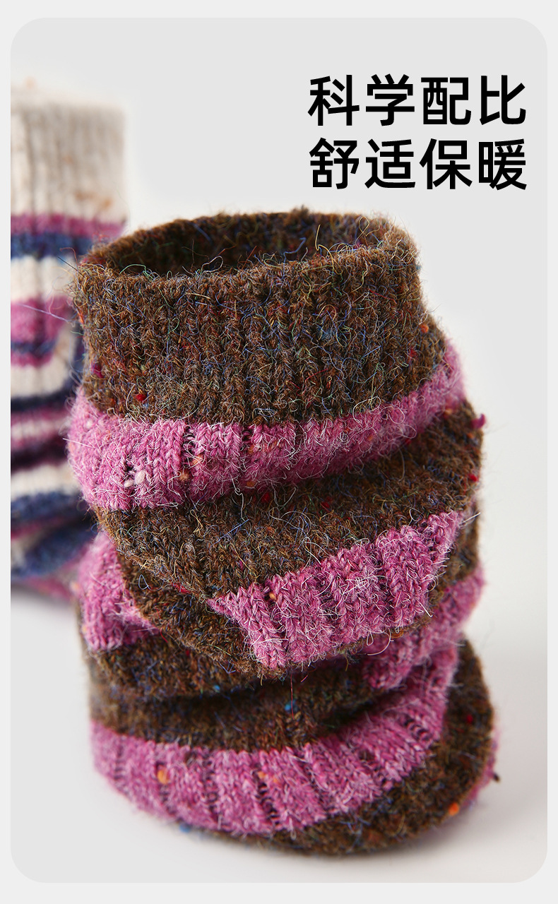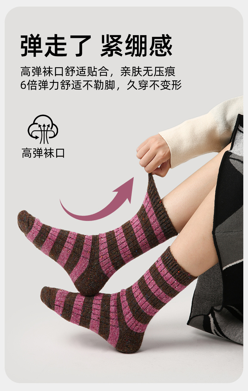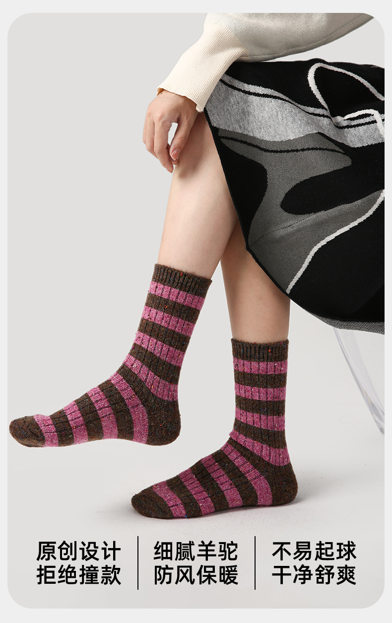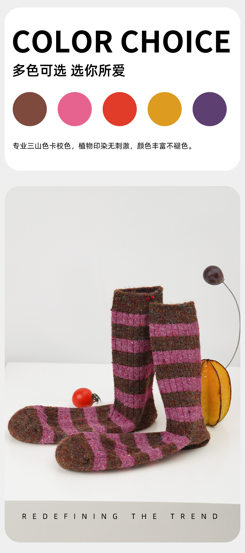 文艺复兴中筒袜条纹撞色加厚毛巾底羊毛袜秋冬新款保暖袜子女批发