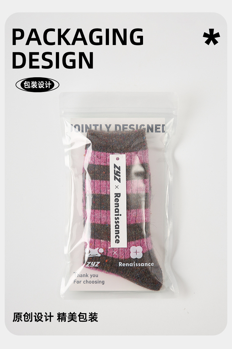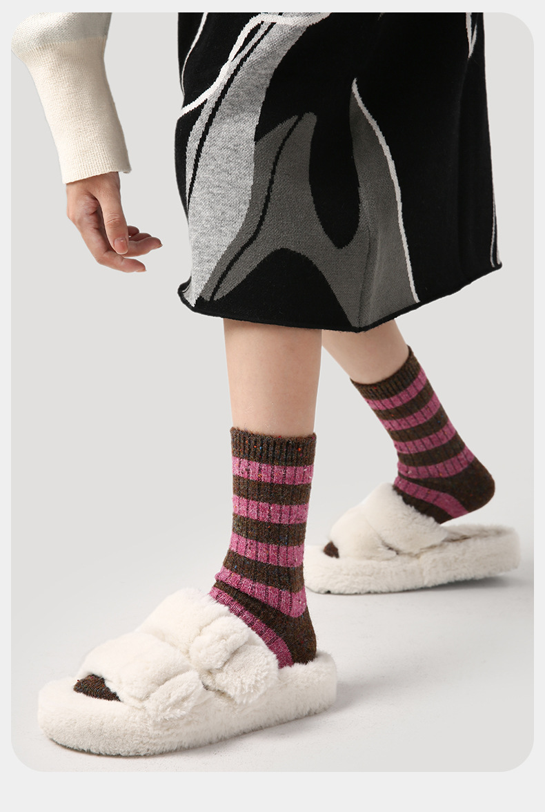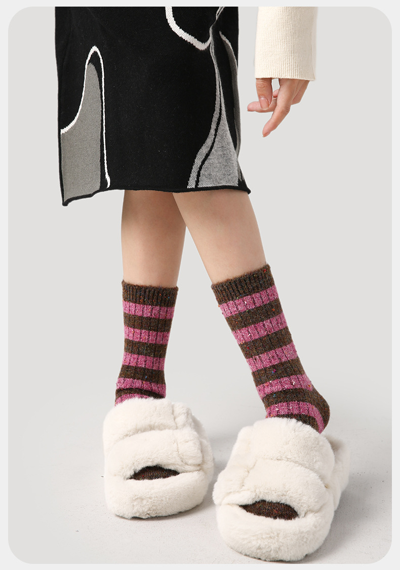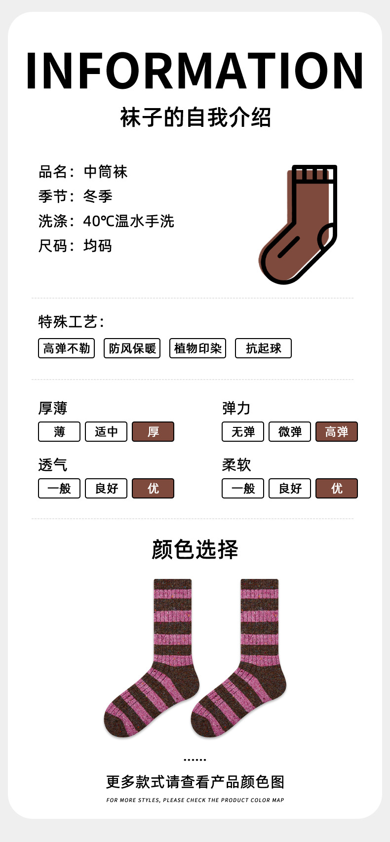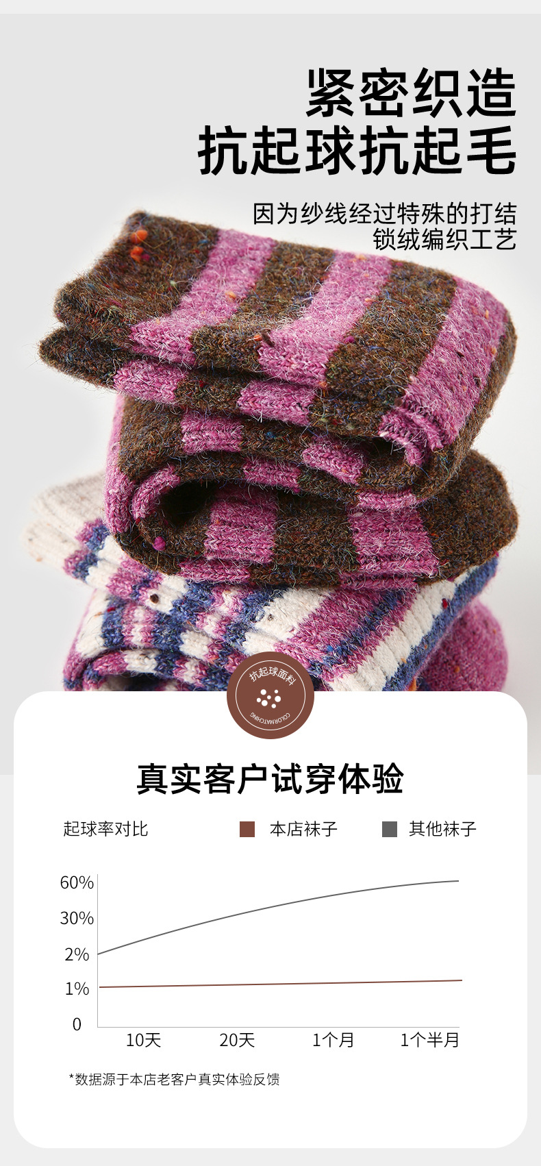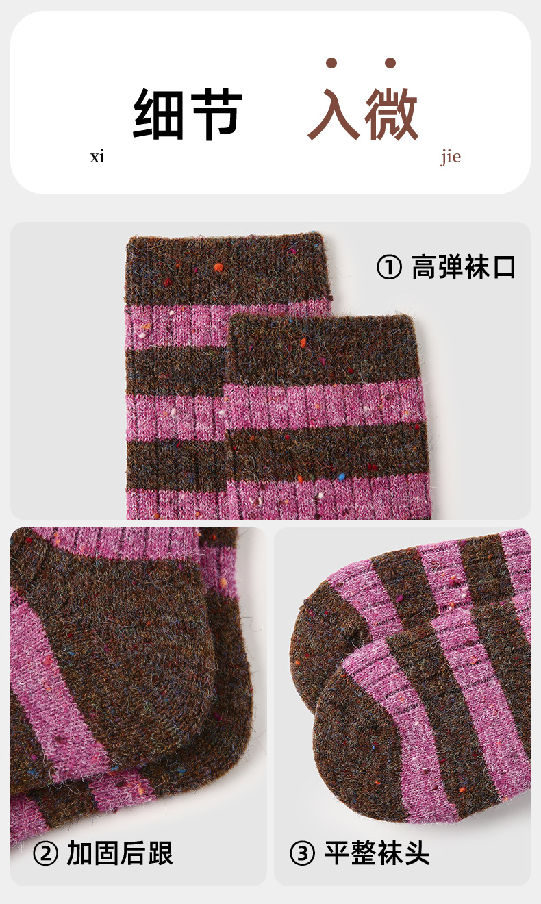 文艺复兴中筒袜条纹撞色加厚毛巾底羊毛袜秋冬新款保暖袜子女批发