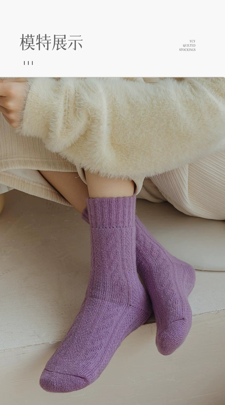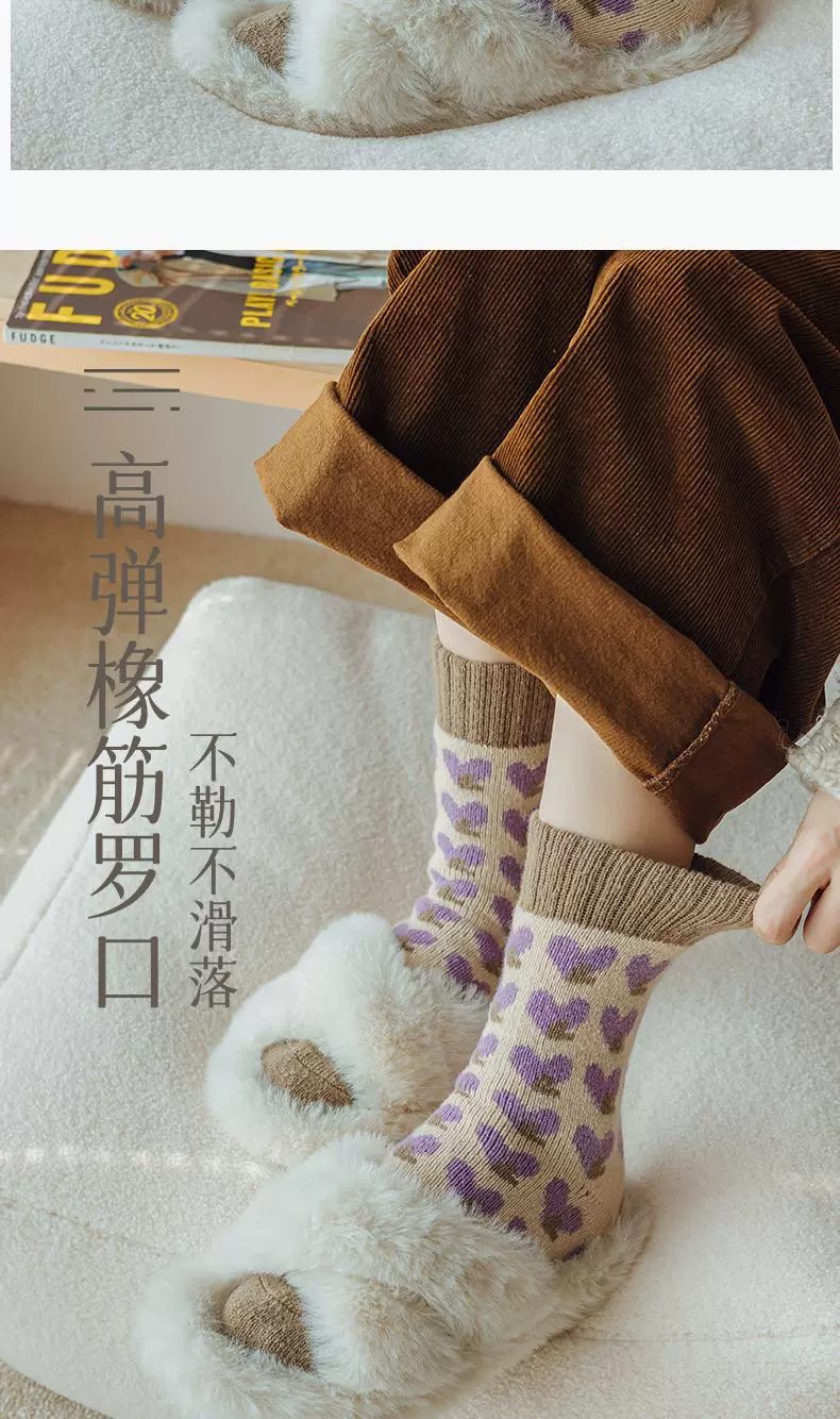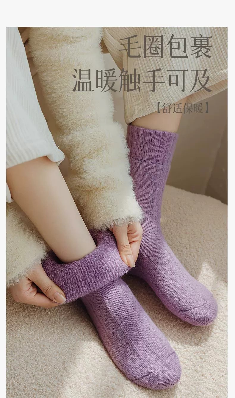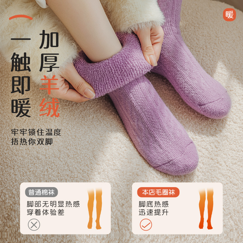 羊绒厚袜子女冬季中筒袜羊毛保暖加厚月子秋冬睡眠地板棉袜长筒袜