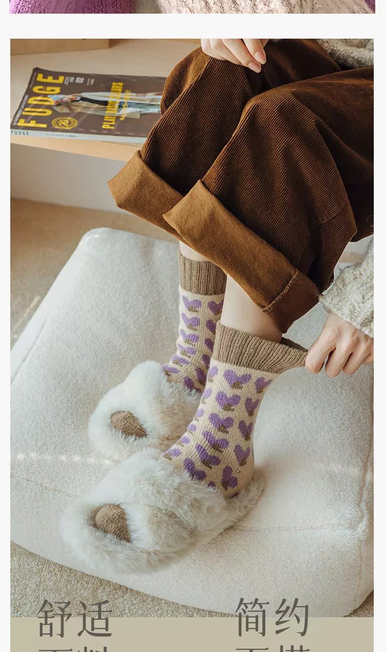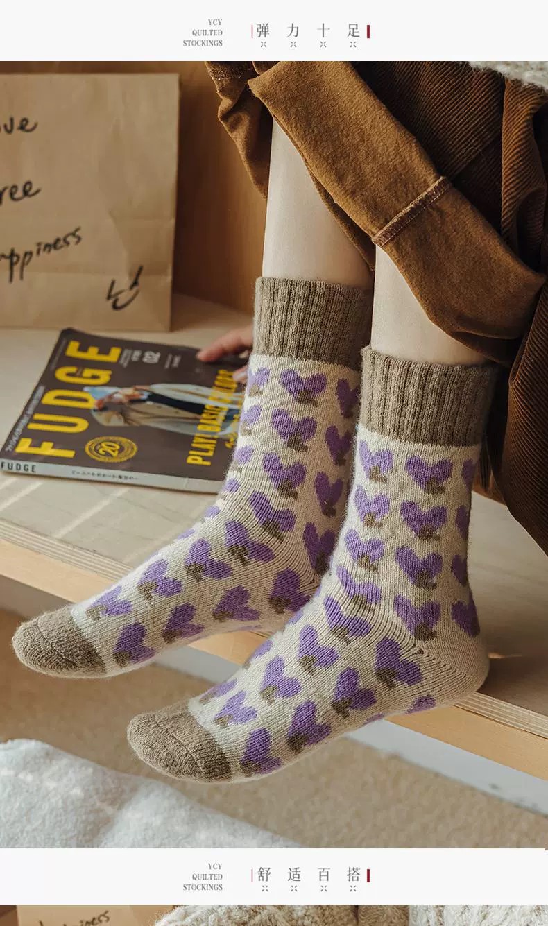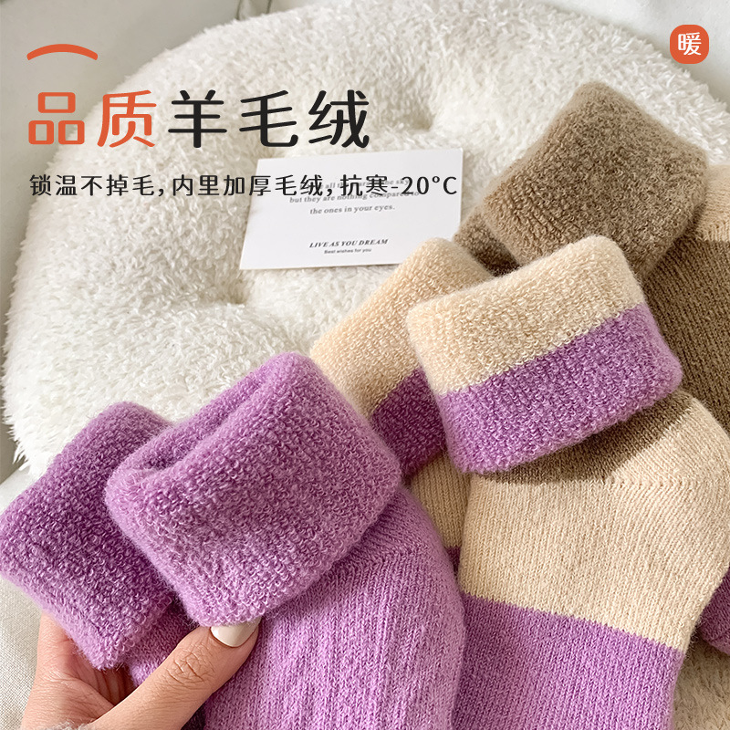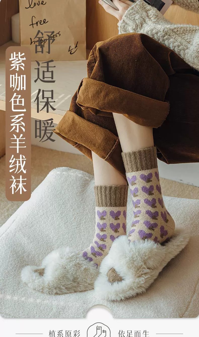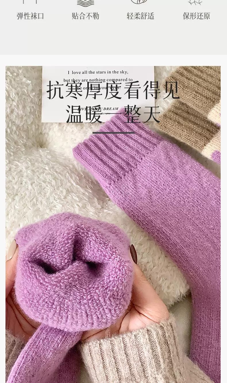羊绒厚袜子女冬季中筒袜羊毛保暖加厚月子秋冬睡眠地板棉袜长筒袜