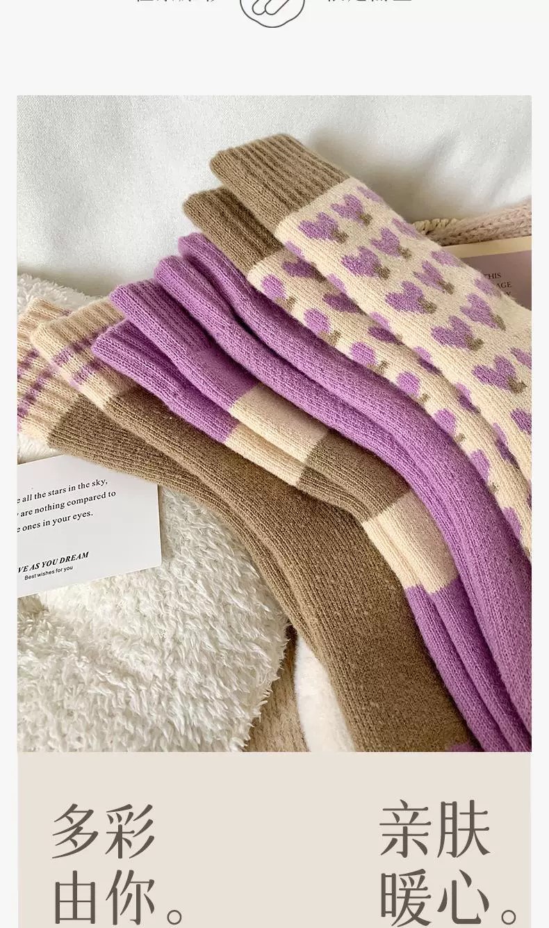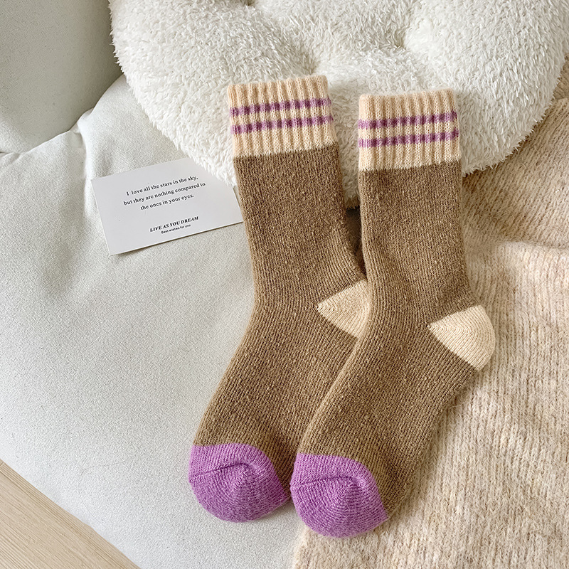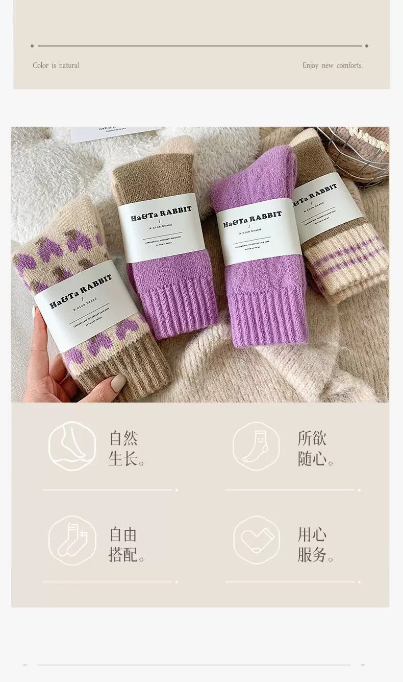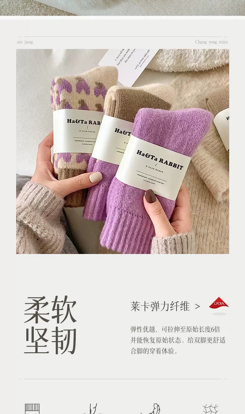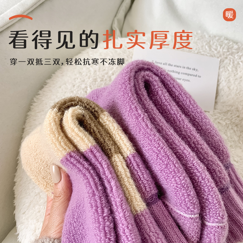 羊绒厚袜子女冬季中筒袜羊毛保暖加厚月子秋冬睡眠地板棉袜长筒袜