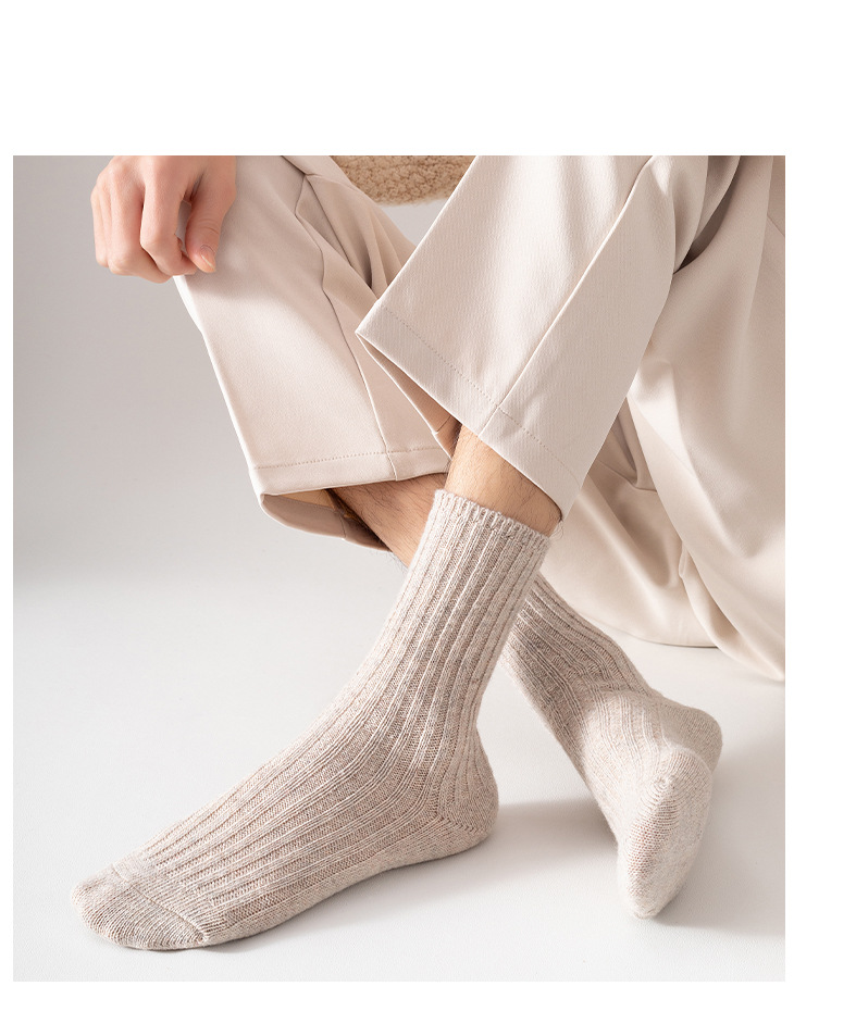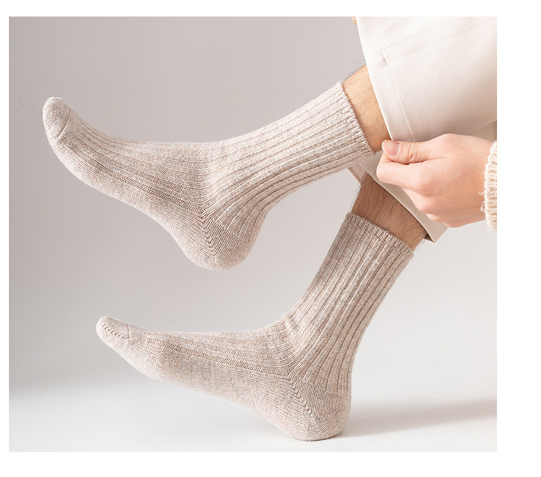加厚羊毛袜男士秋冬季长袜 保暖加绒双针男中筒袜 保暖羊绒商务袜