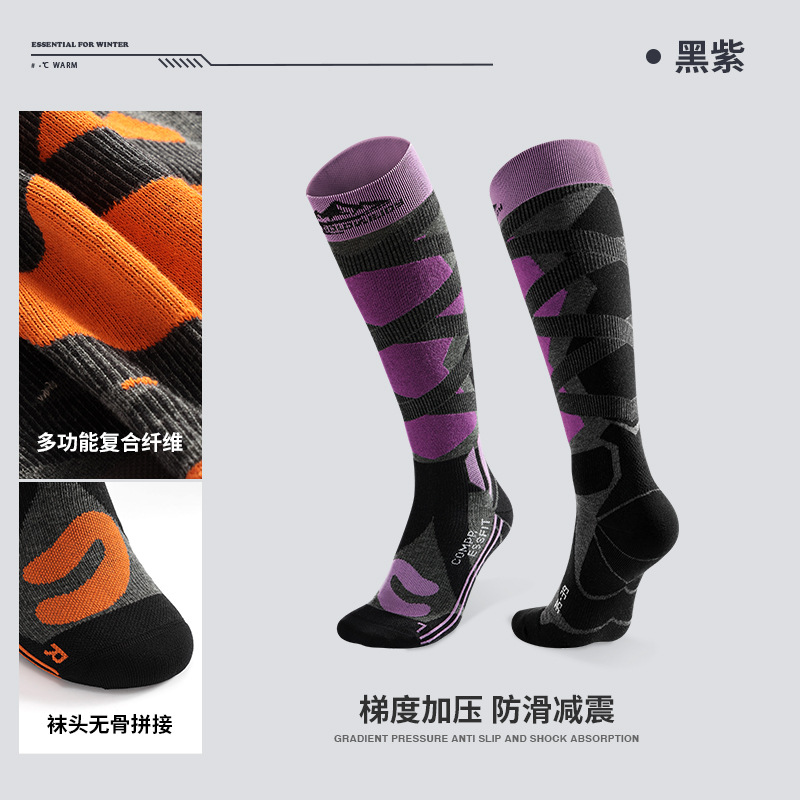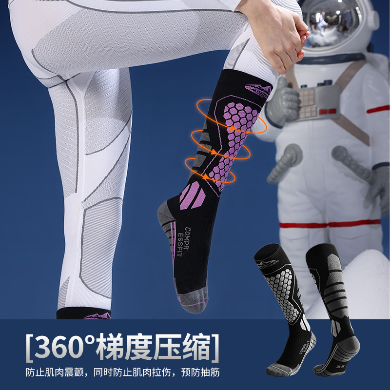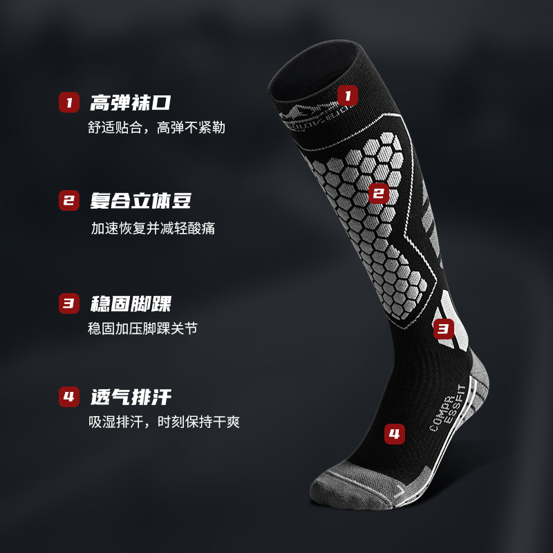 专业长筒滑雪袜秋冬户外羊毛保暖加压防扭伤运动袜排汗透气雪地袜