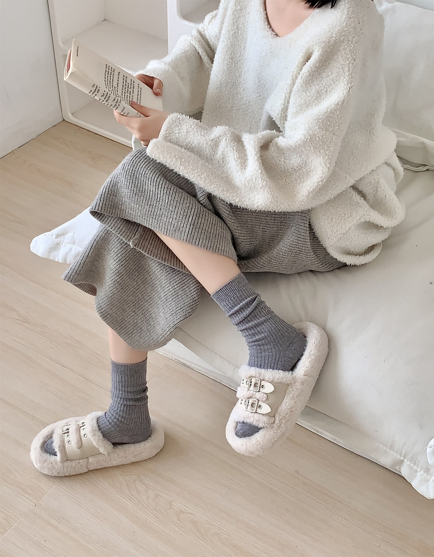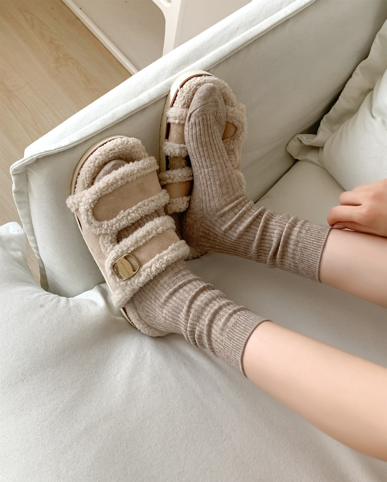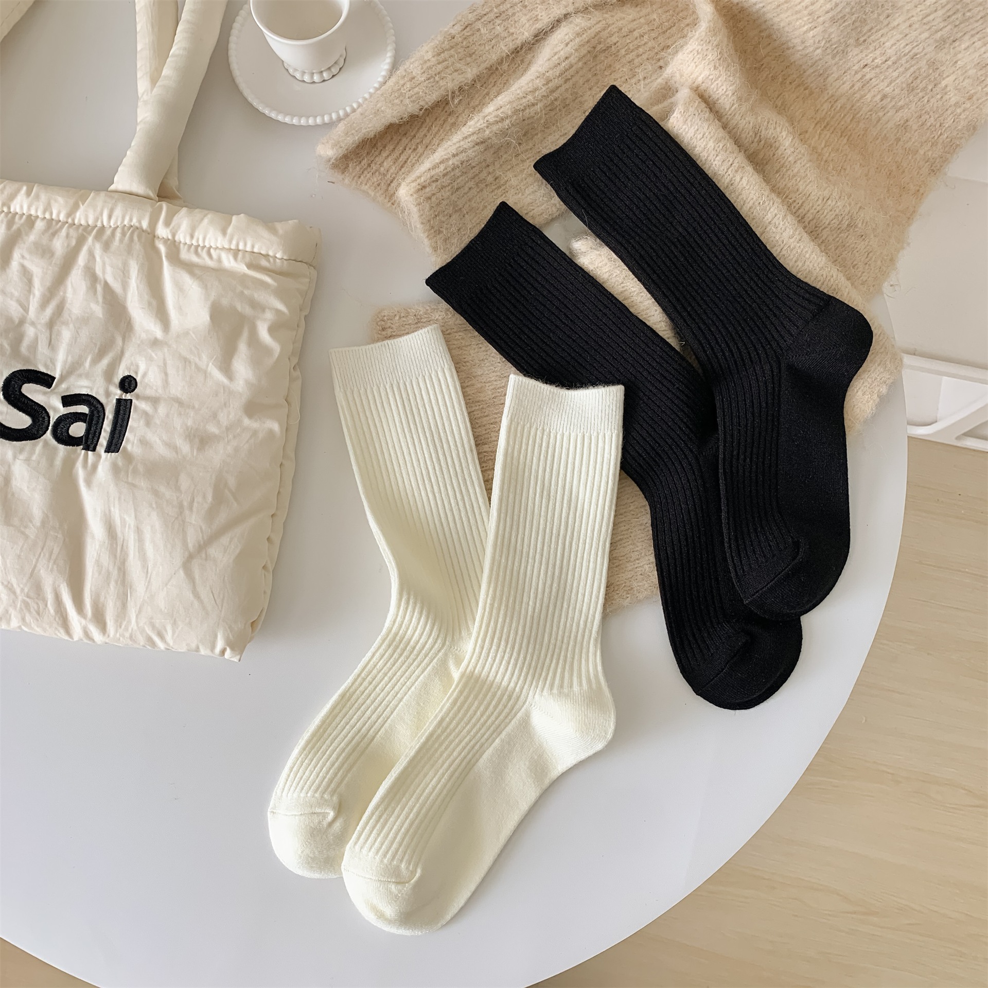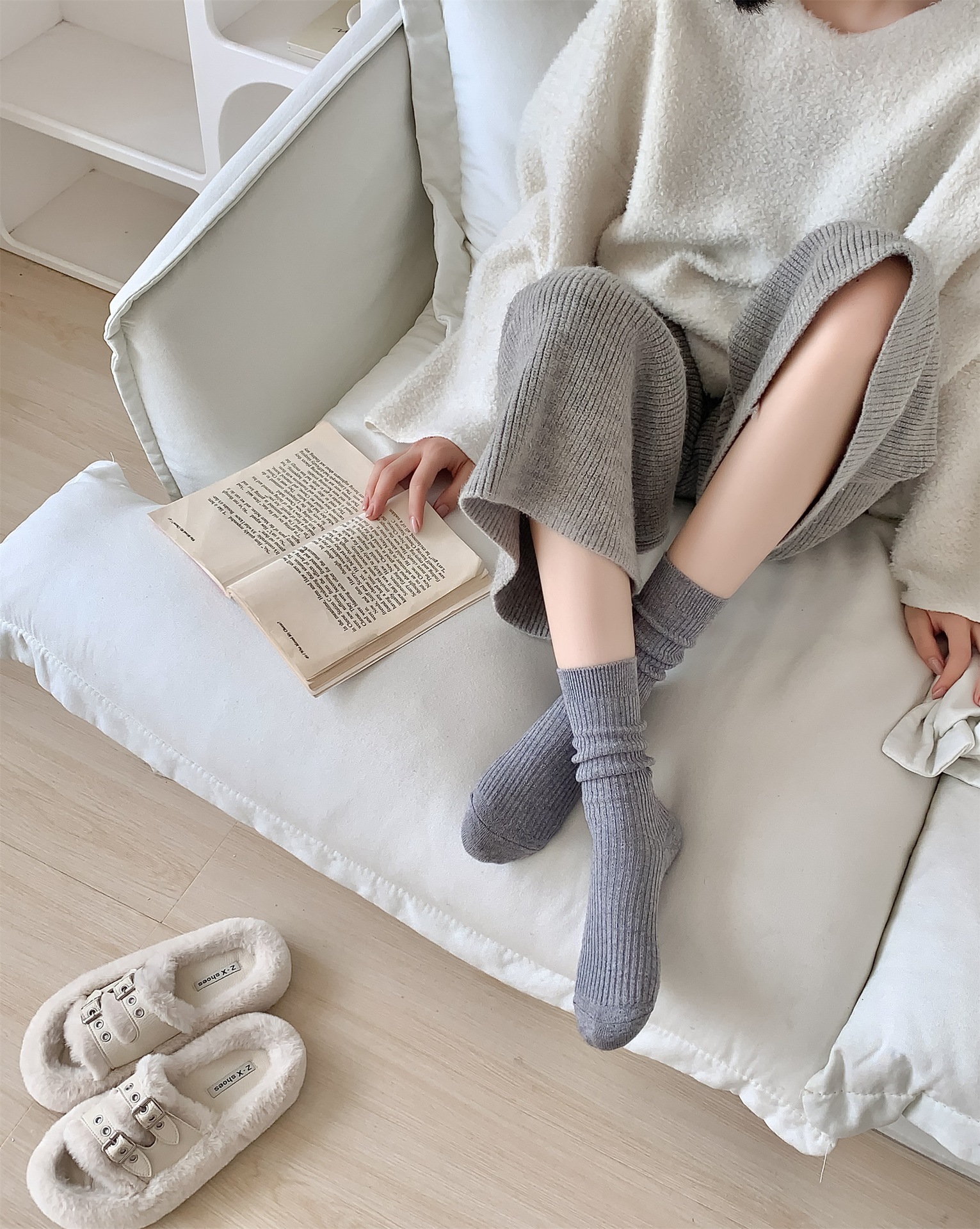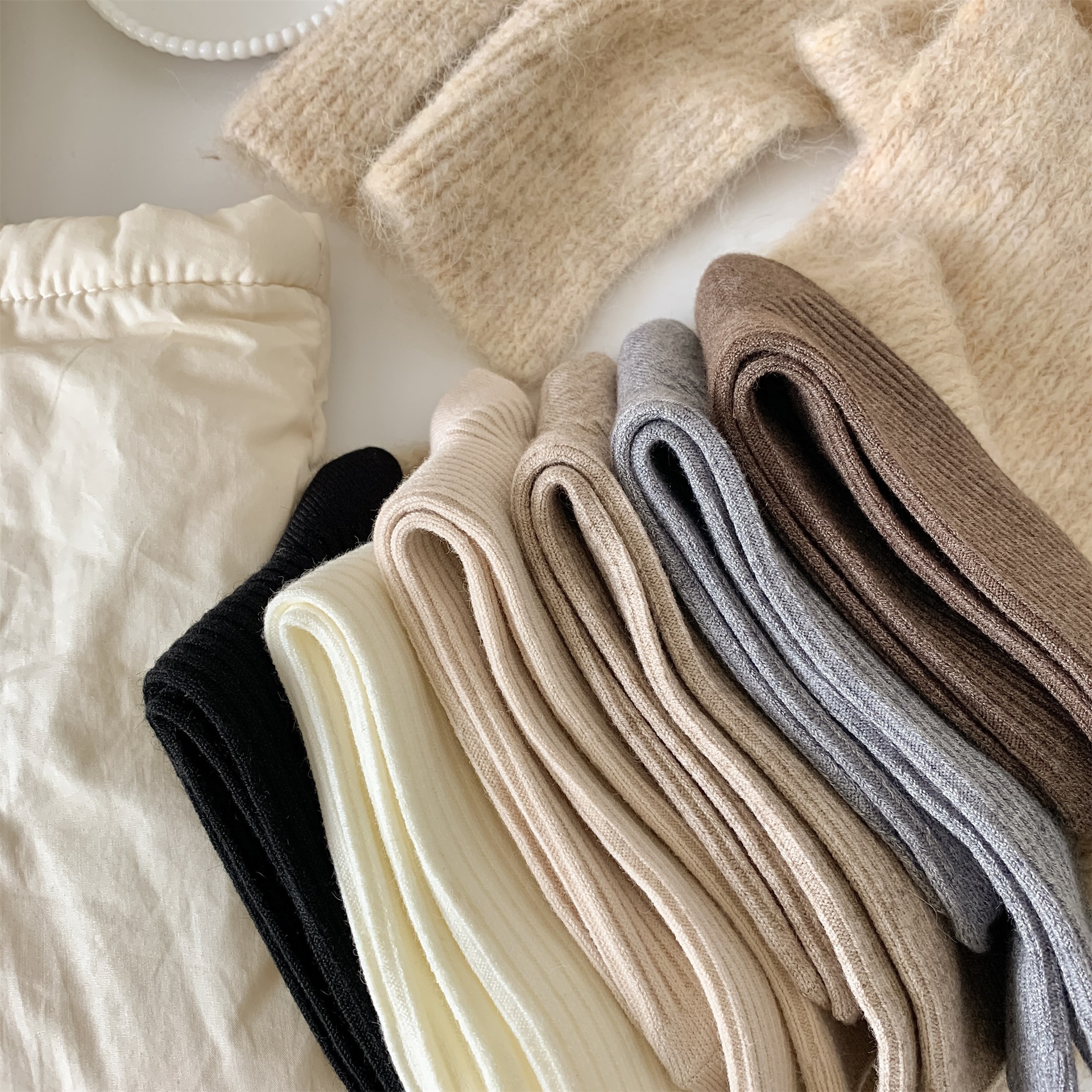 羊毛袜子女秋冬美拉德纯色竖条纹羊毛中筒袜加厚保暖堆堆长袜女士