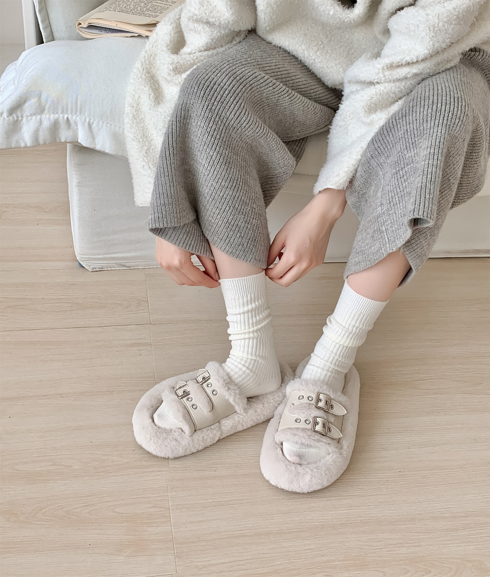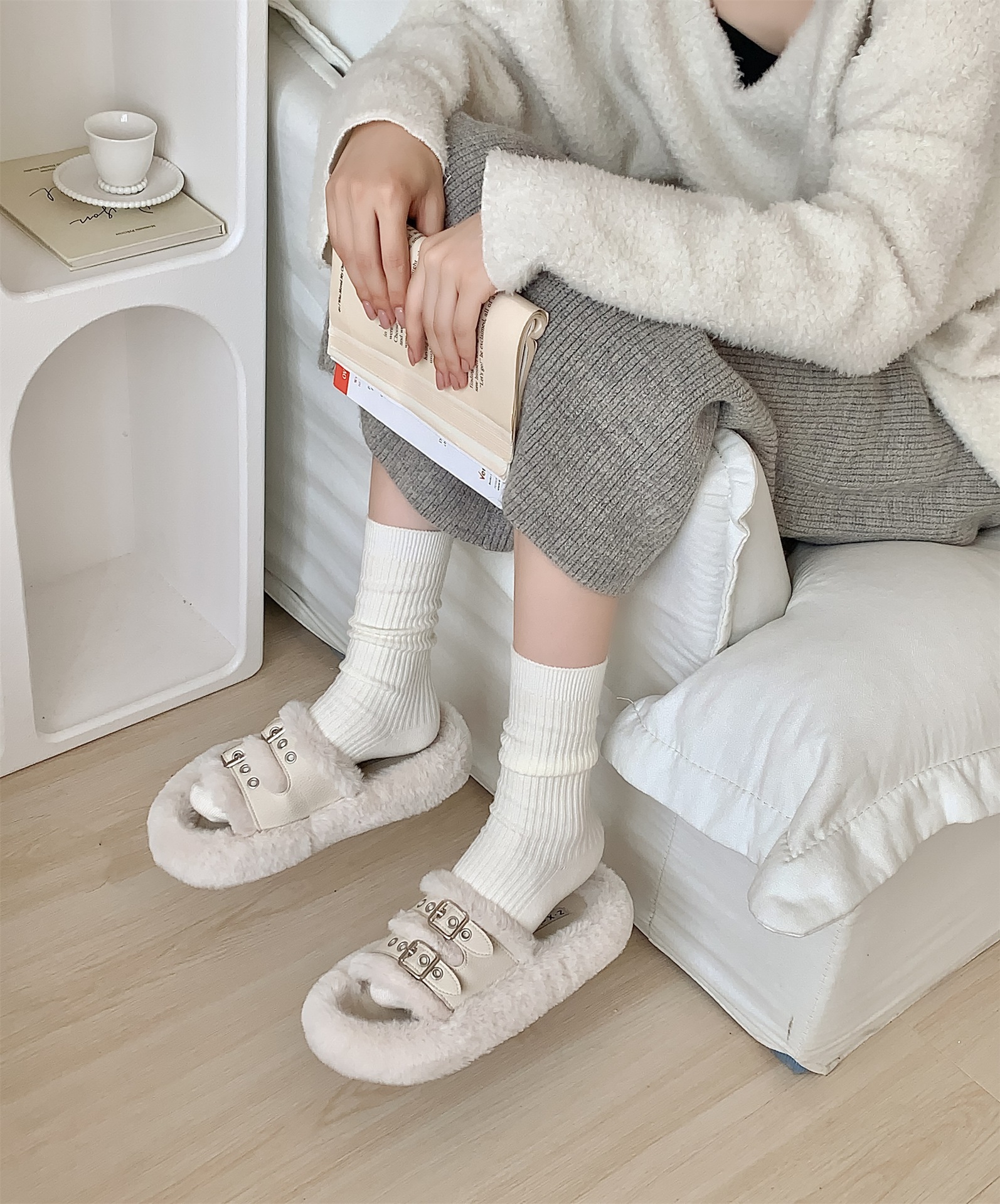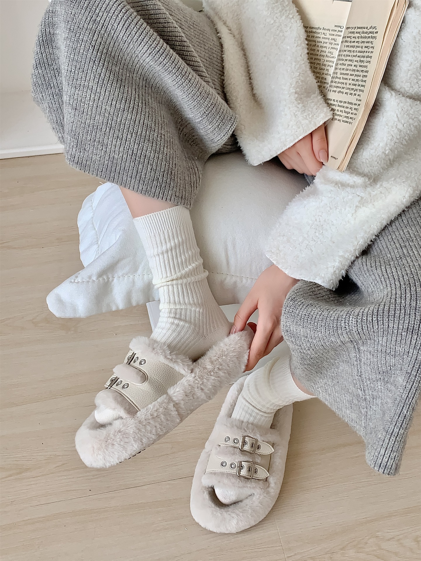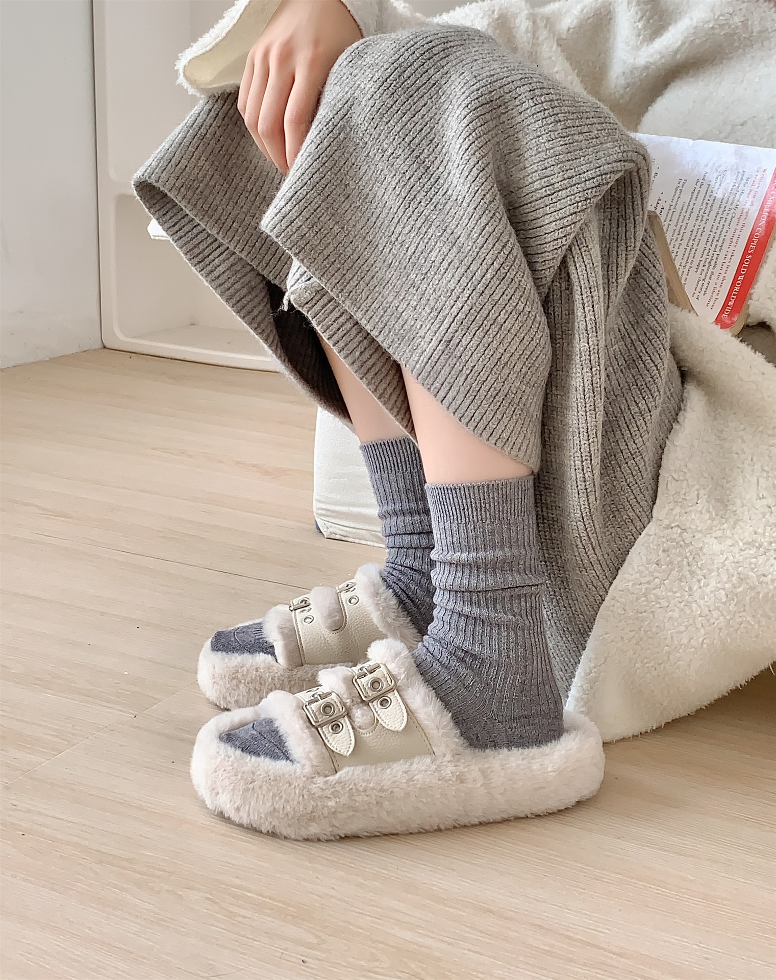 羊毛袜子女秋冬美拉德纯色竖条纹羊毛中筒袜加厚保暖堆堆长袜女士