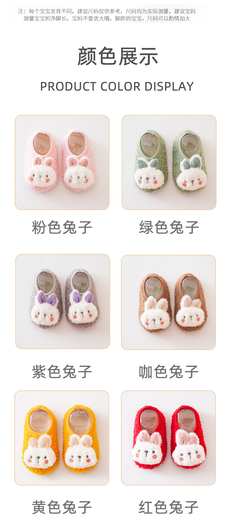 可爱兔子秋冬地板袜防滑袜套地板鞋袜加厚宝宝袜子室内儿童学步袜