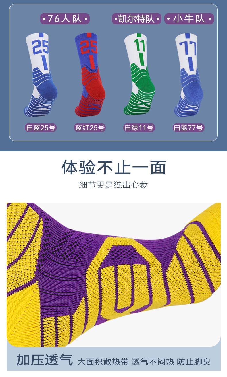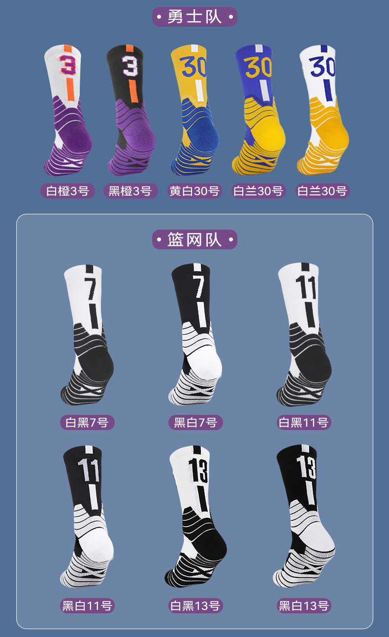 精英中筒号码篮球袜加厚毛巾底专业实战吸汗透气儿童高帮运动袜子