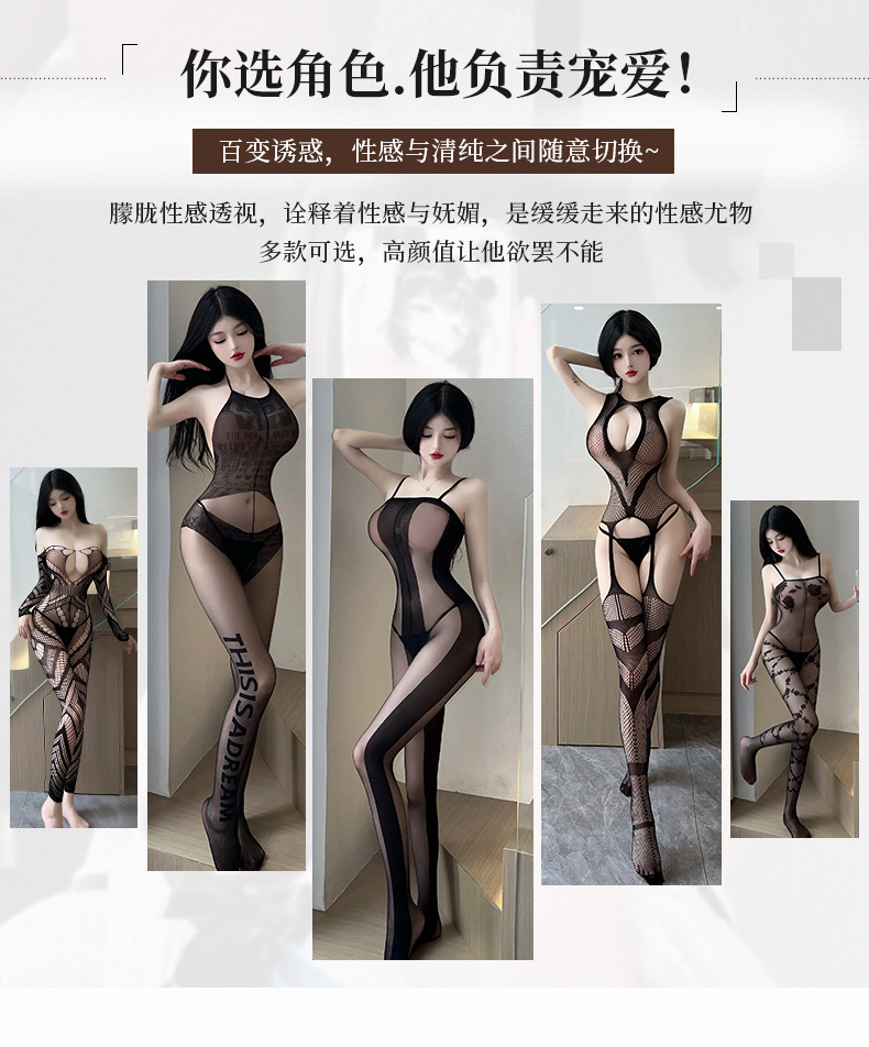 情趣内衣性感诱惑免脱开档网袜丝袜制服诱惑透明套装组合一件代发