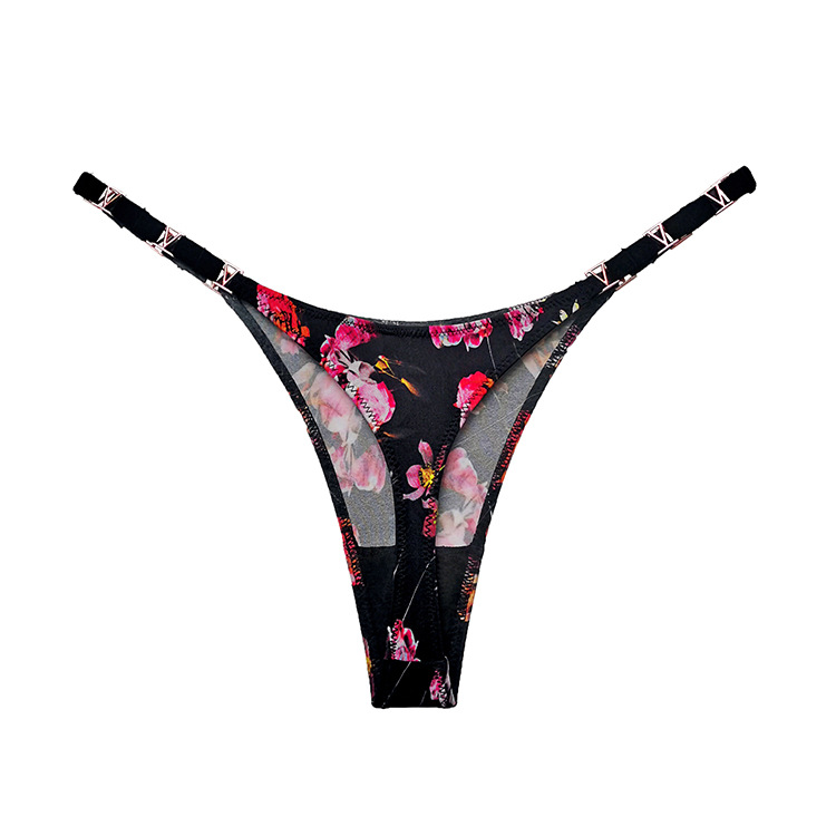 1908T 性感欧美金属冰丝T裤女健身运动提臀低腰高叉丁字裤半包臀