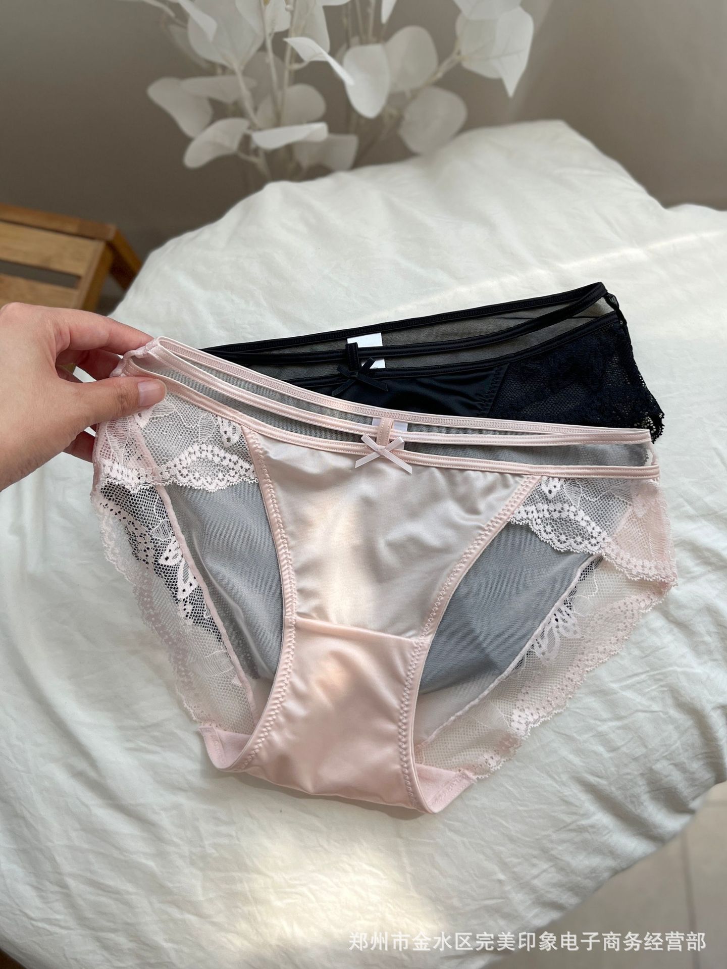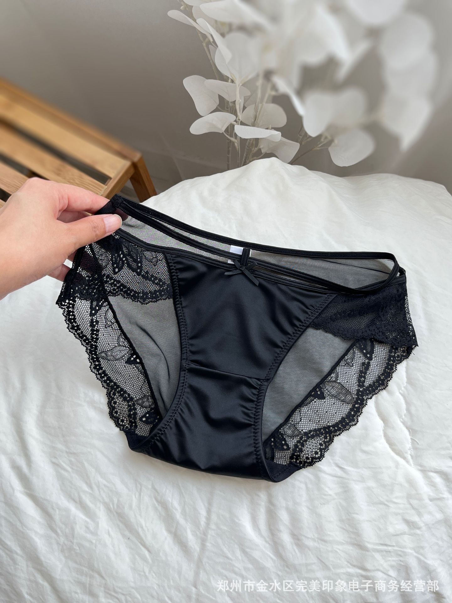 596新款欧美性感刺绣蕾丝内裤时尚镂空网纱透明中腰三角裤头棉档