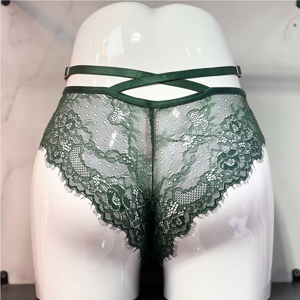 新品性感烫钻交叉细带蕾丝边内裤女 高腰可调节弹性棉档内裤三角