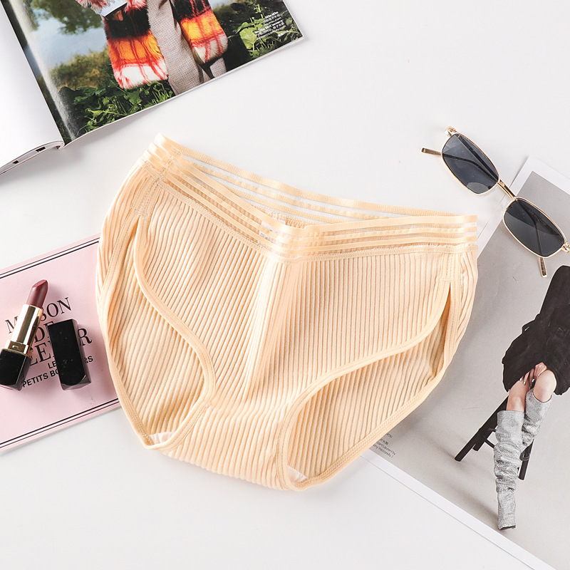 爆款鱼丝性感螺纹棉女士内裤 中腰透明腰头性感无痕蕾丝三角裤头