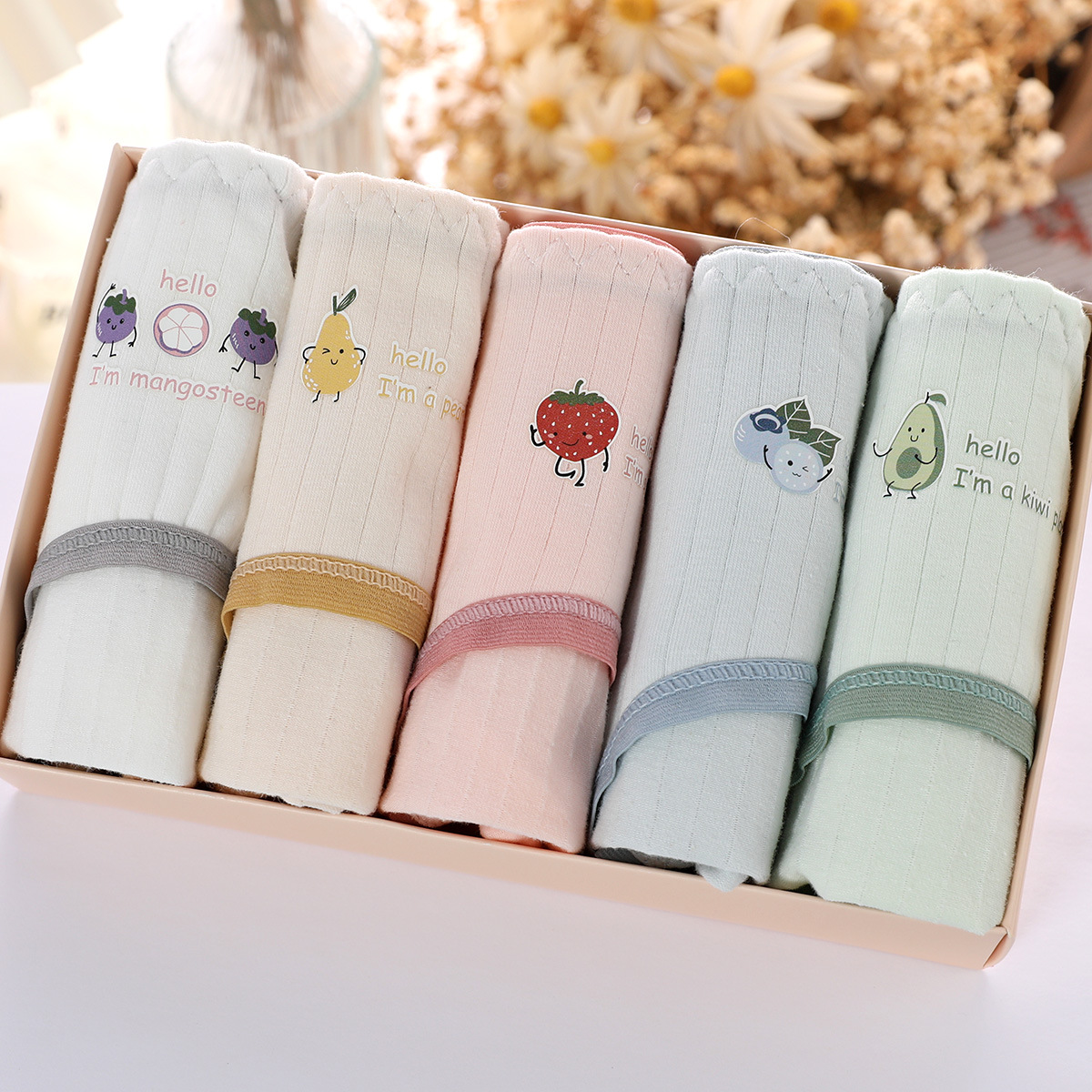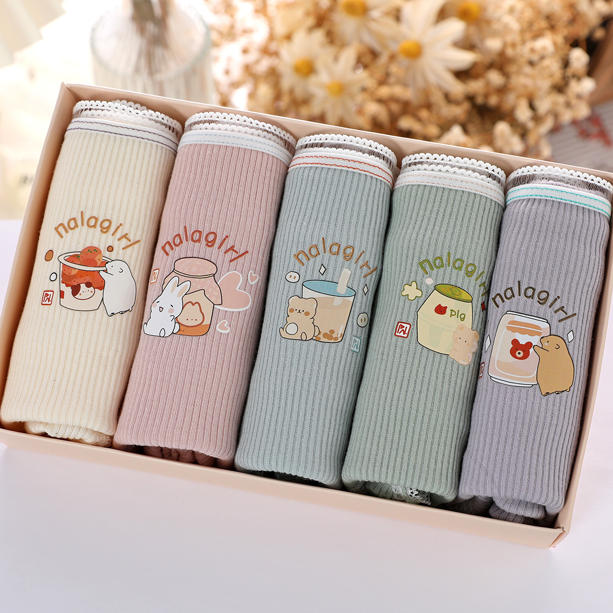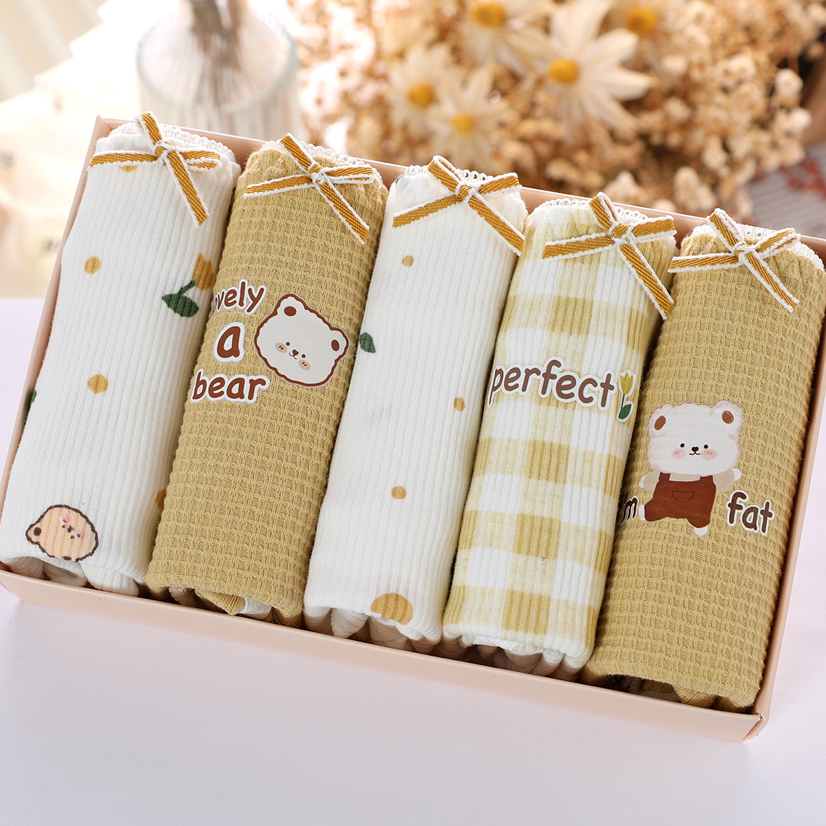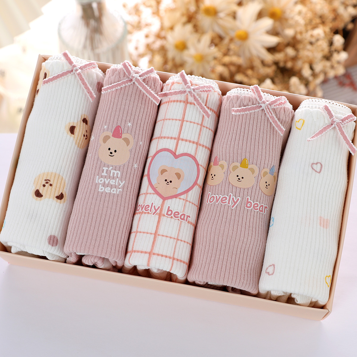 纯棉女士内裤礼盒装全棉面料可爱日系少女三角内裤女式5条组合