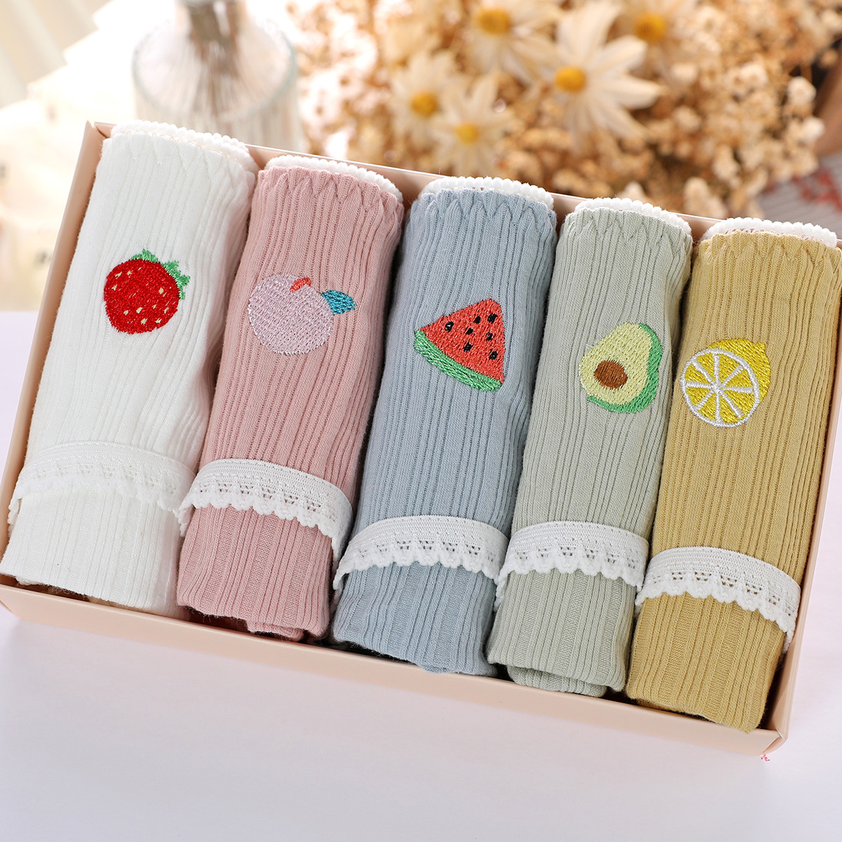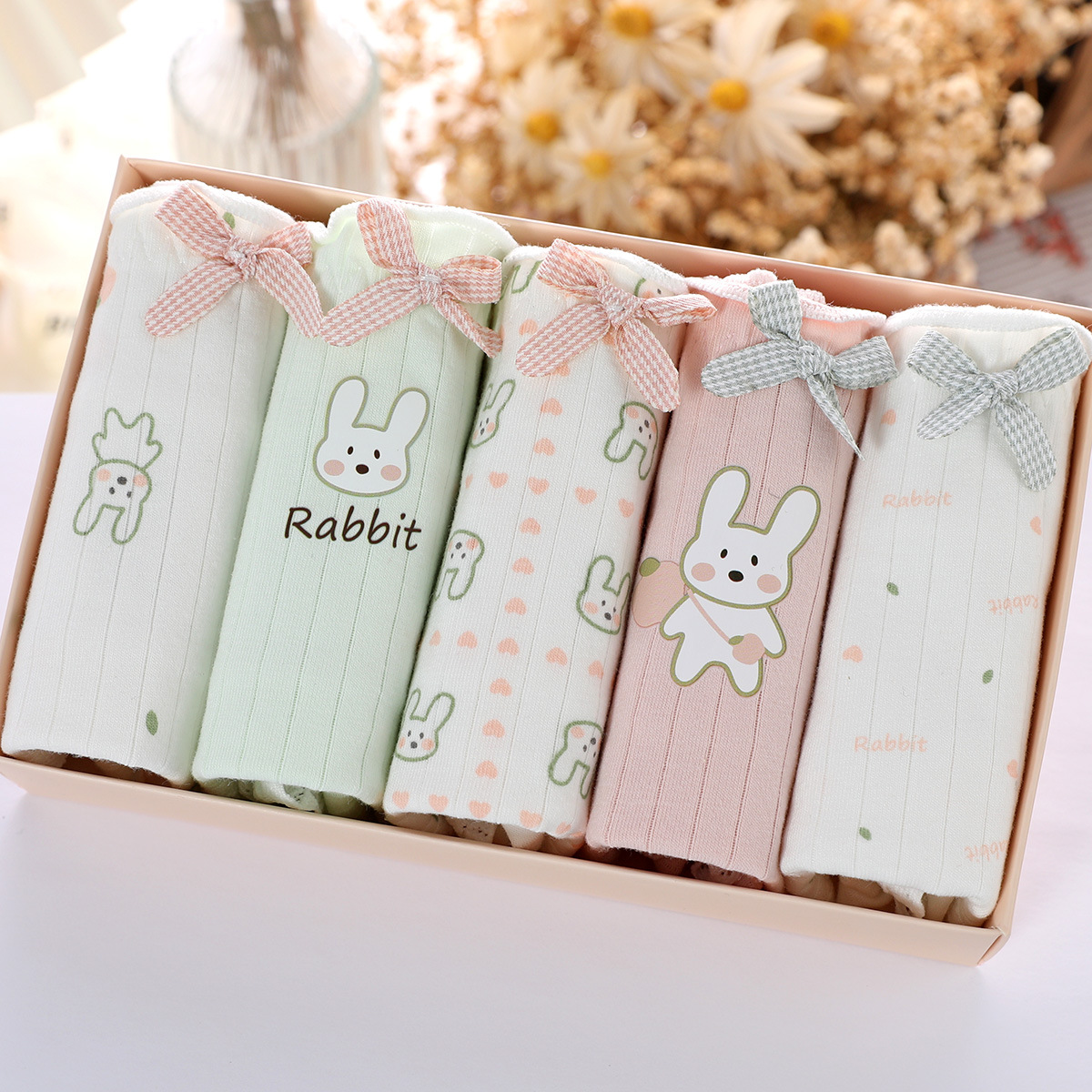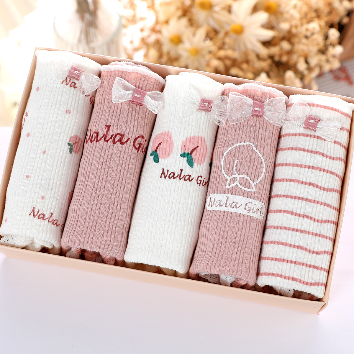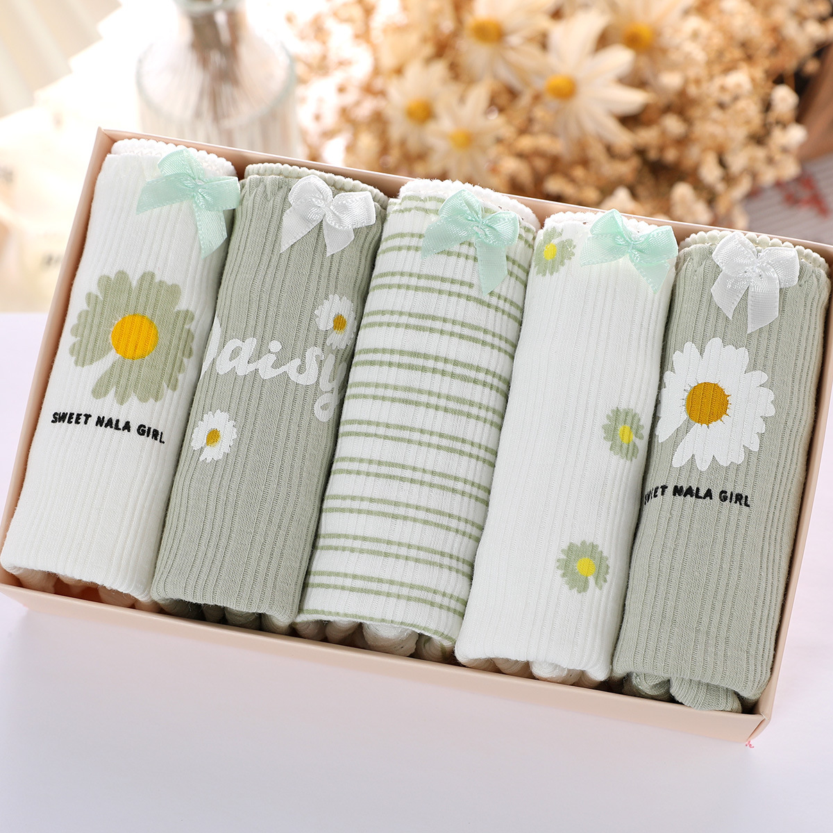 纯棉女士内裤礼盒装全棉面料可爱日系少女三角内裤女式5条组合