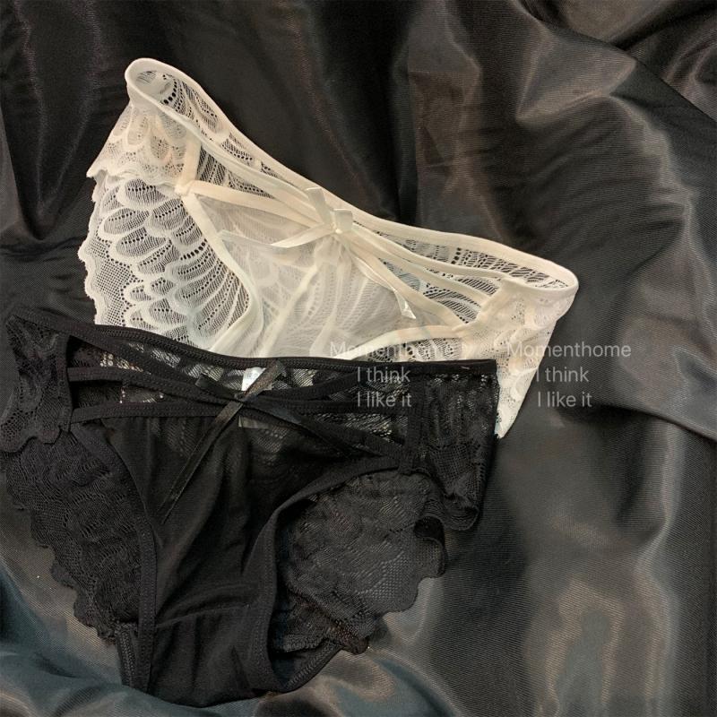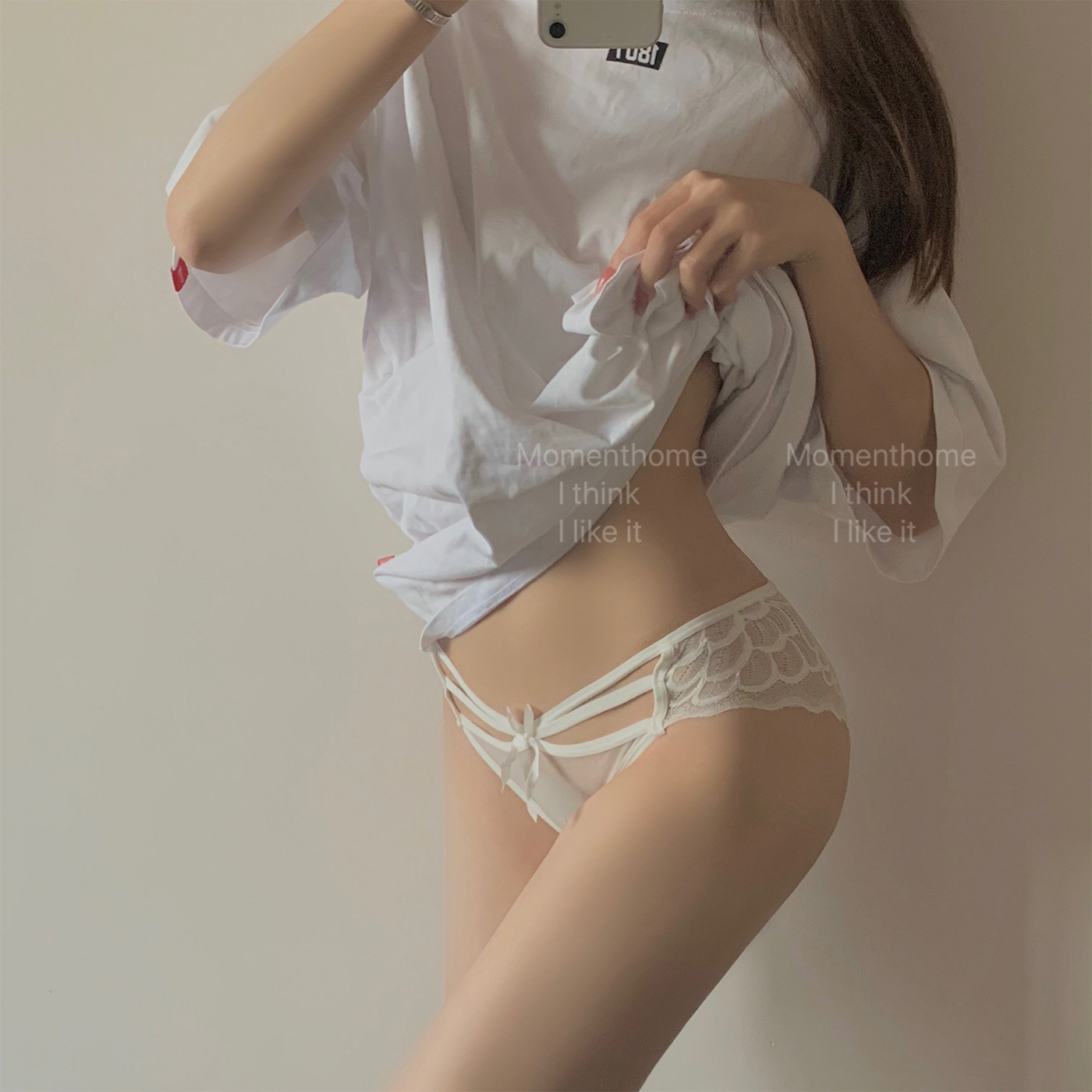 法式少女心结蕾丝内裤低腰镂空性感交叉微透网纱纯棉裆无痕三角裤
