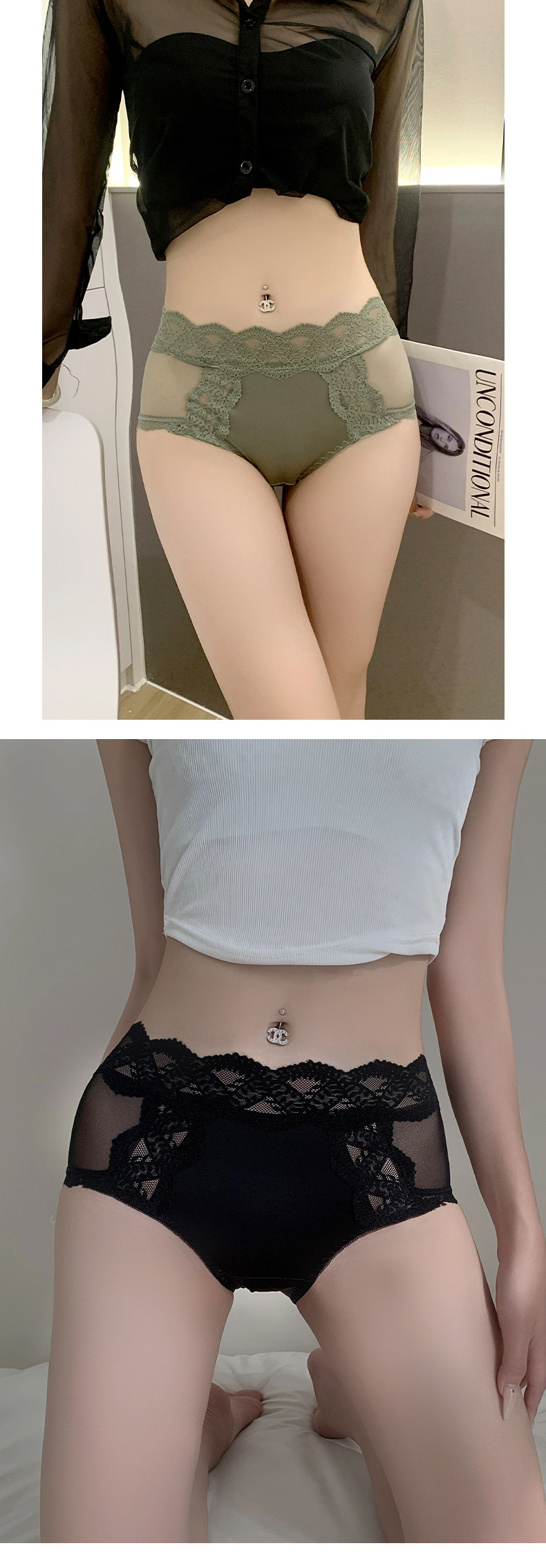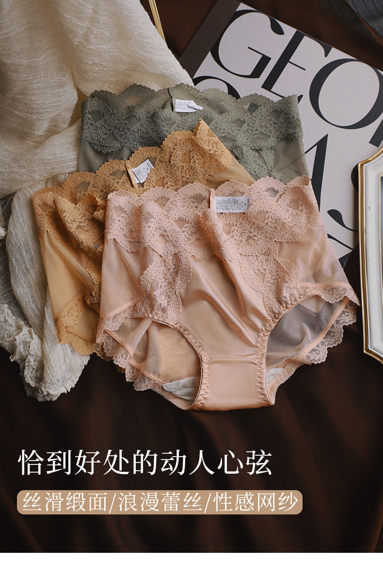中高腰蕾丝女士内裤新款性感纯欲冰丝无痕夏季薄款收腹提臀短裤头