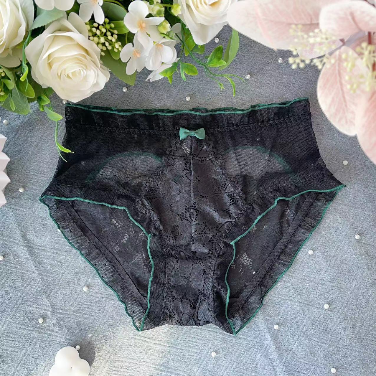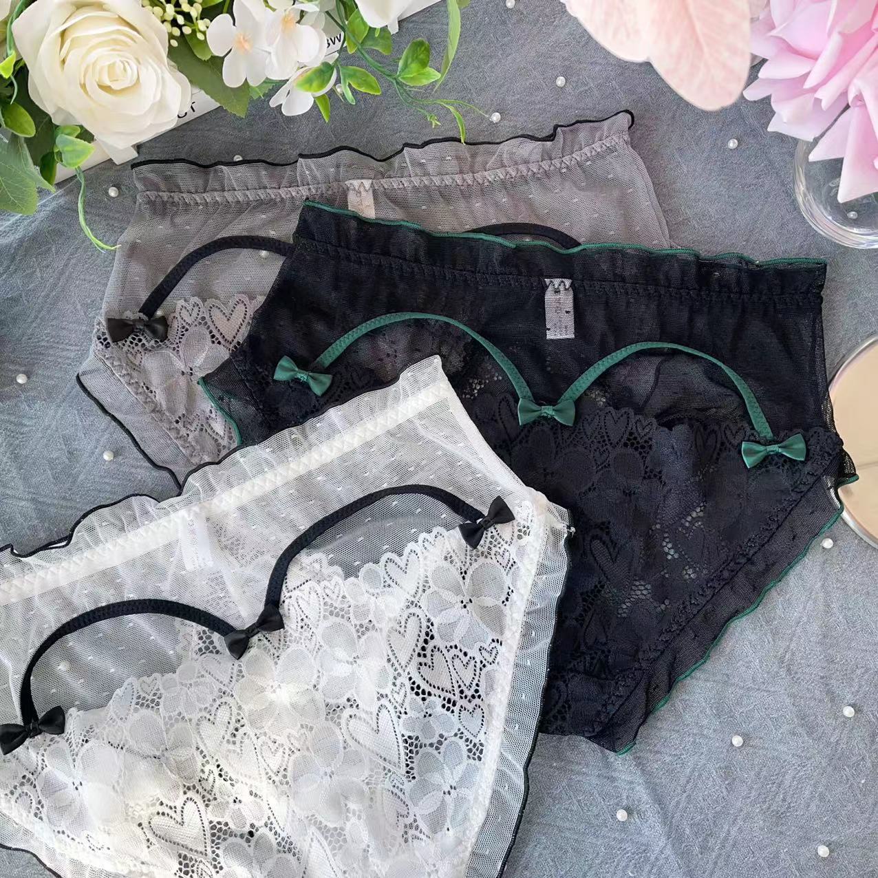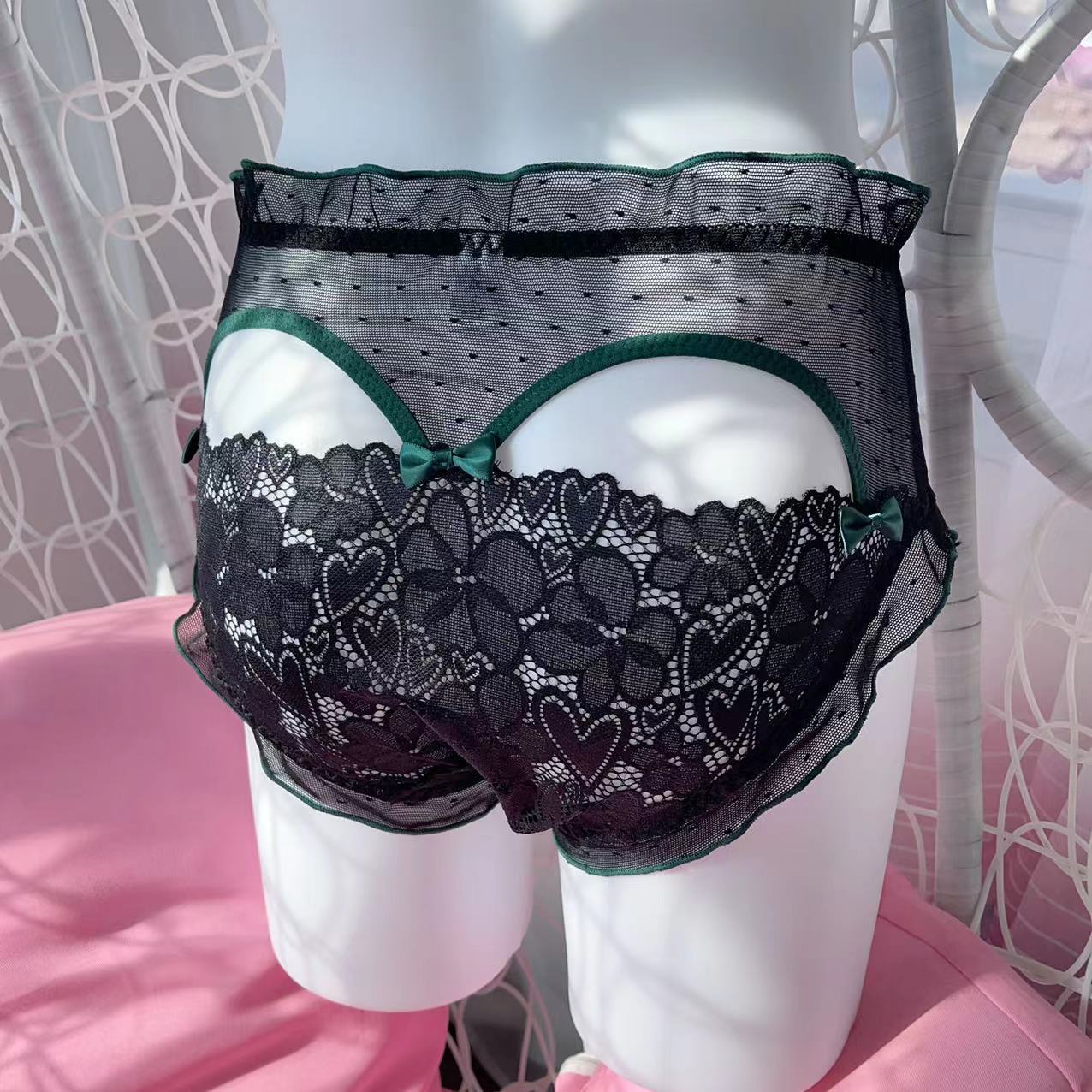 厂家批发日系新款大码胖MM性感镂空领结蕾丝网纱桃心性感女士内裤