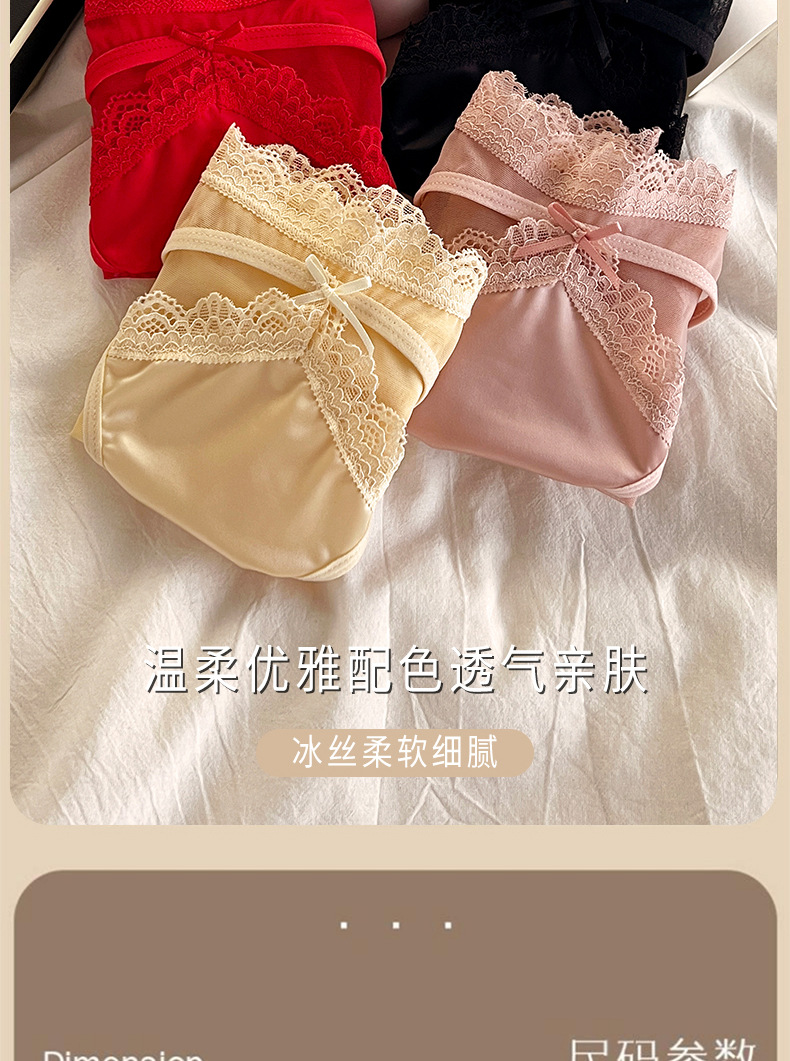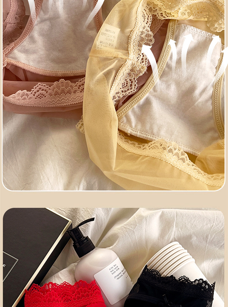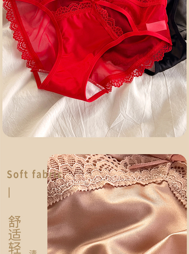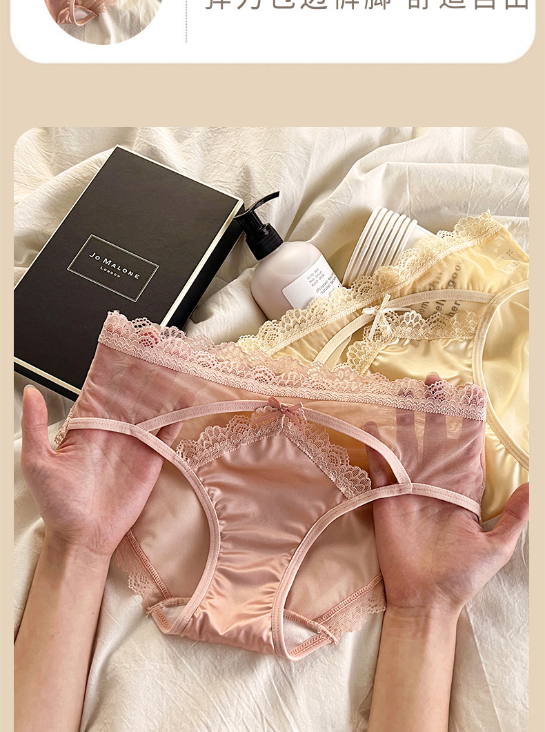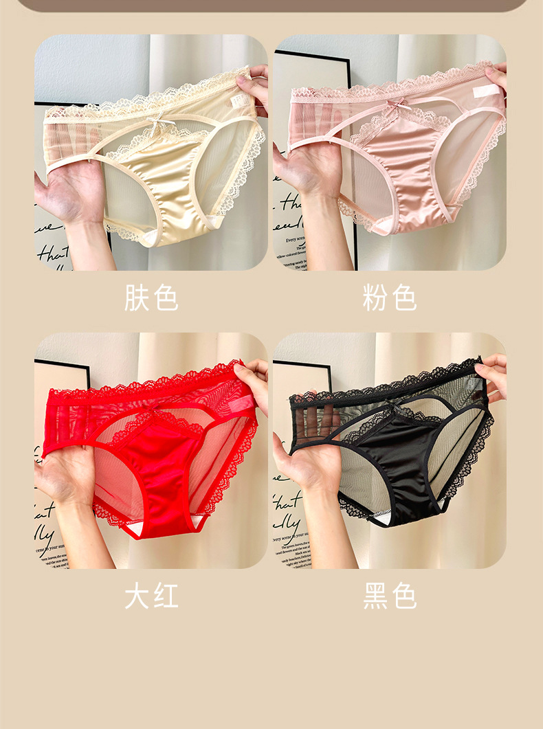 性感法式蕾丝内裤女士透明网纱轻薄质感透气纯棉裆中腰女士三角裤