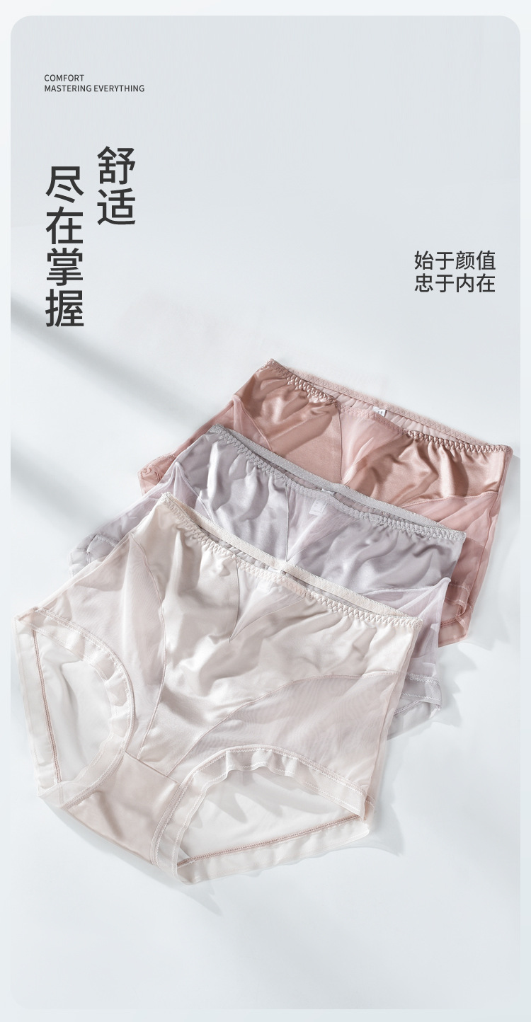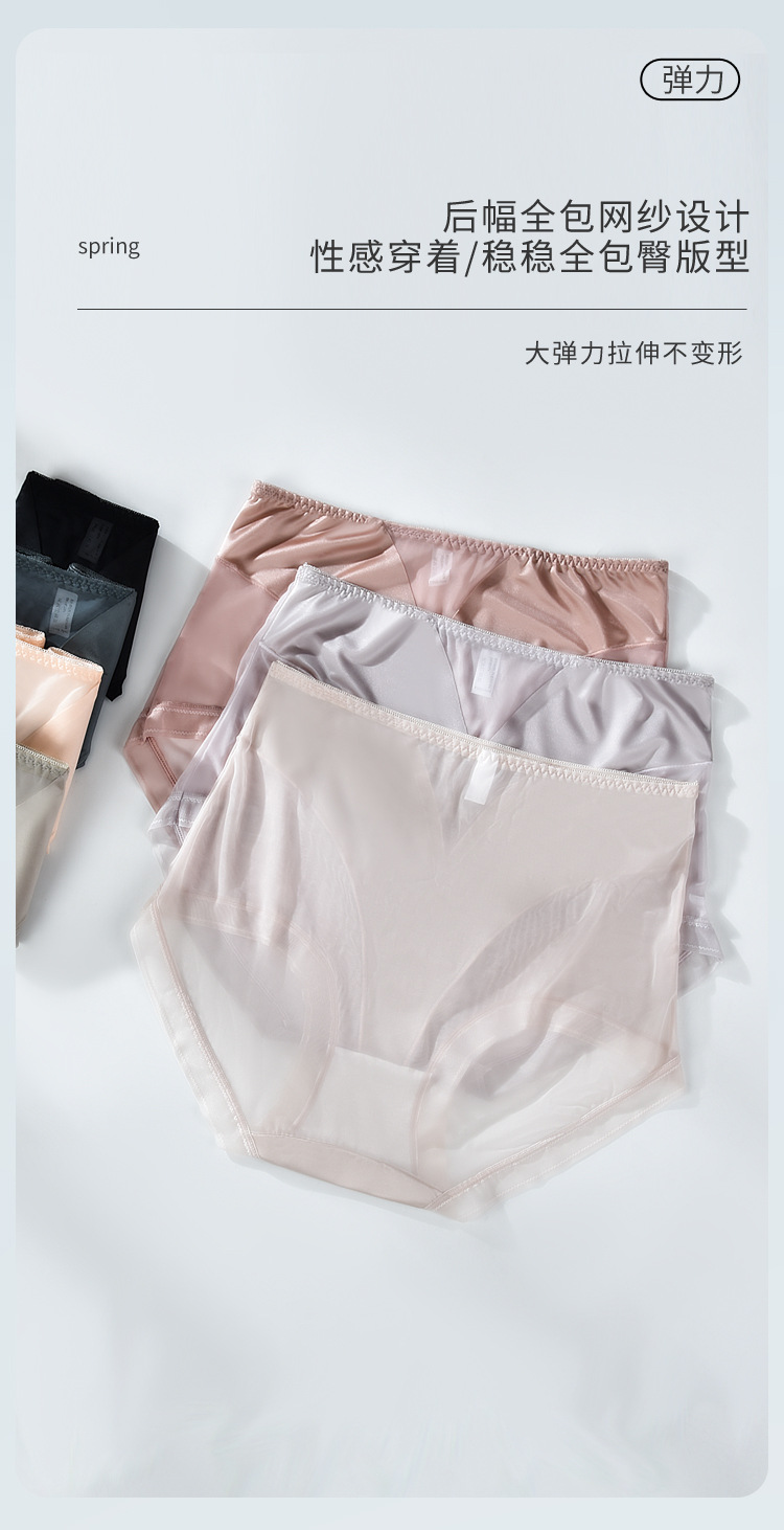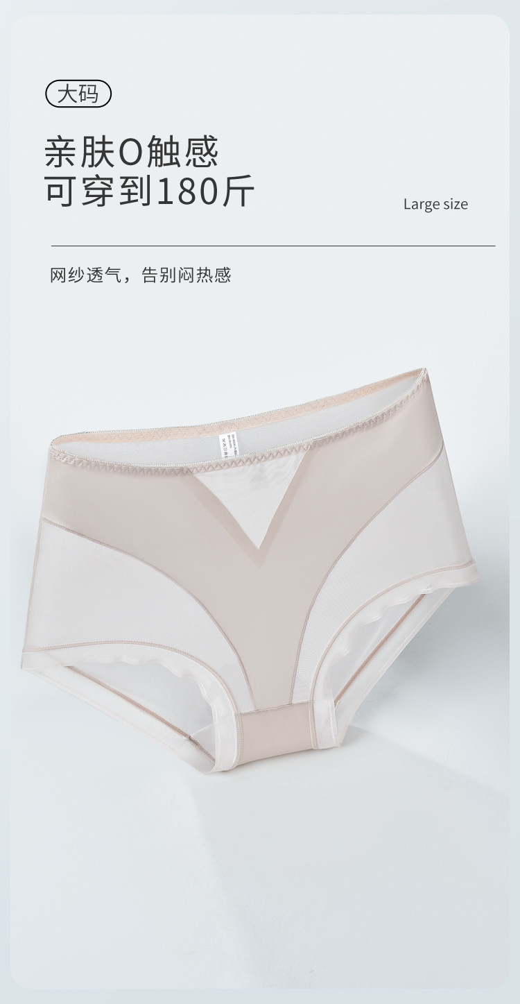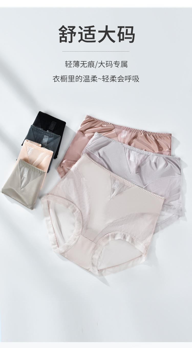 大码网纱蕾丝内裤女士冰丝胖mm高腰缎面纯棉裆夏季薄款透气200斤