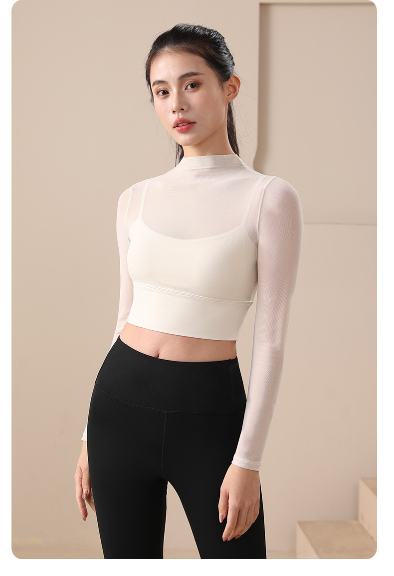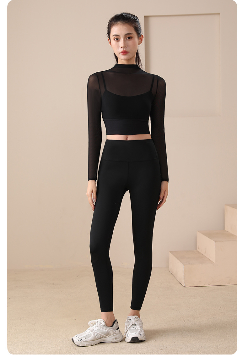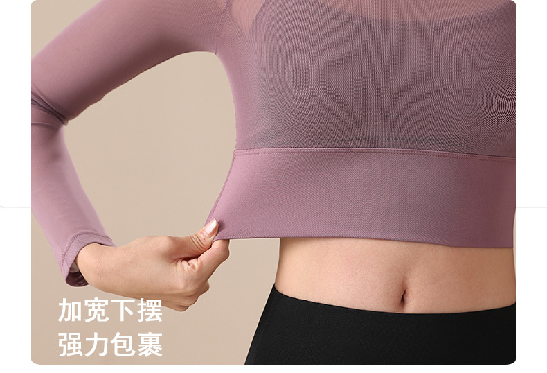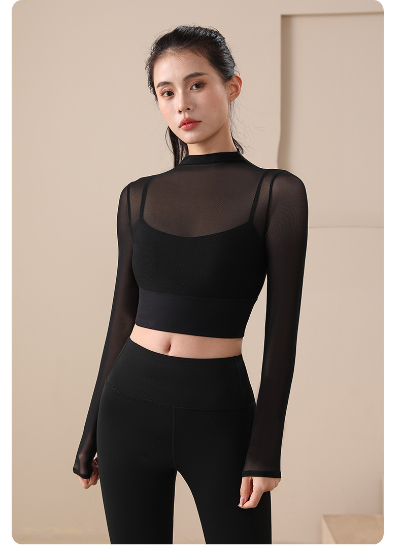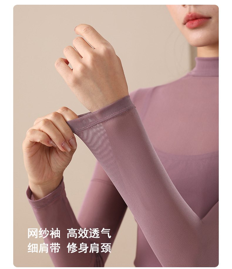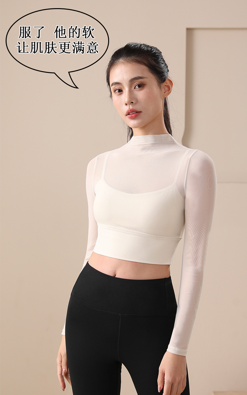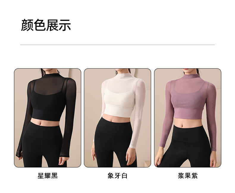 瑜伽服女长袖春秋跑步假两件网纱高级感紧身衣专业健身服运动上衣