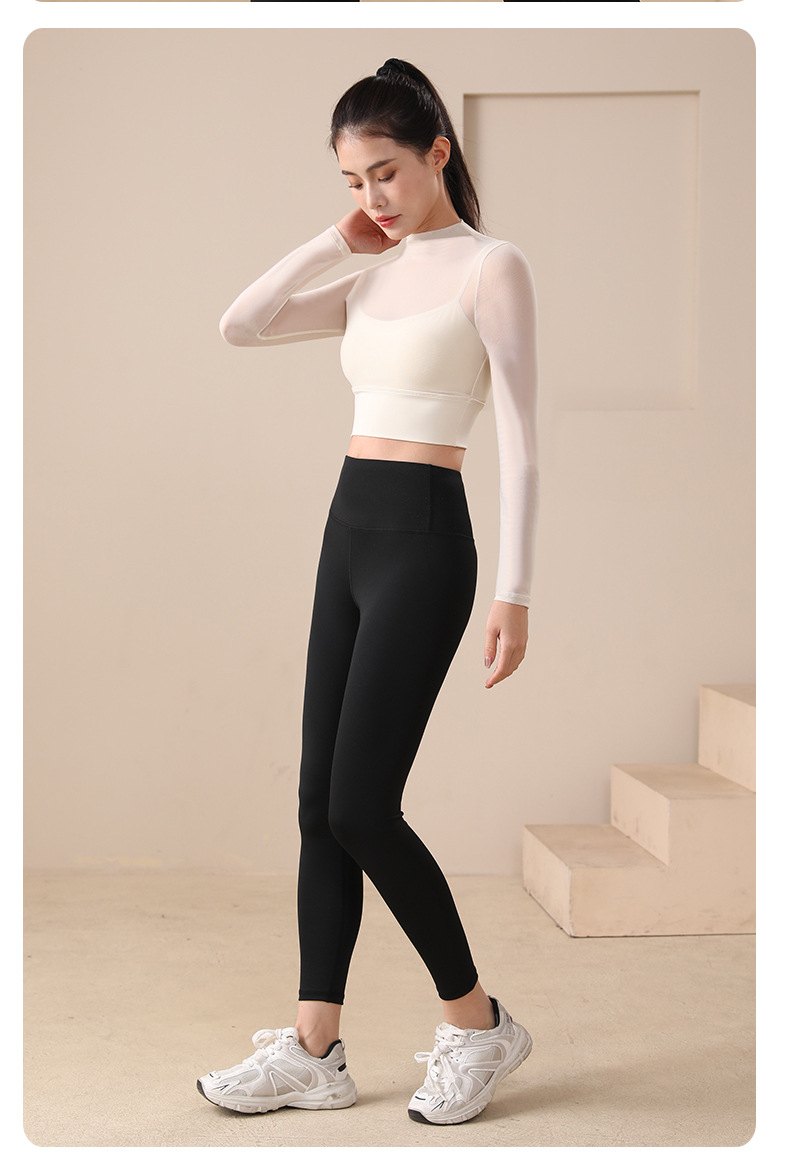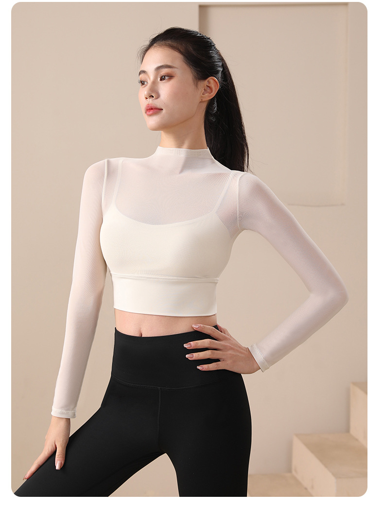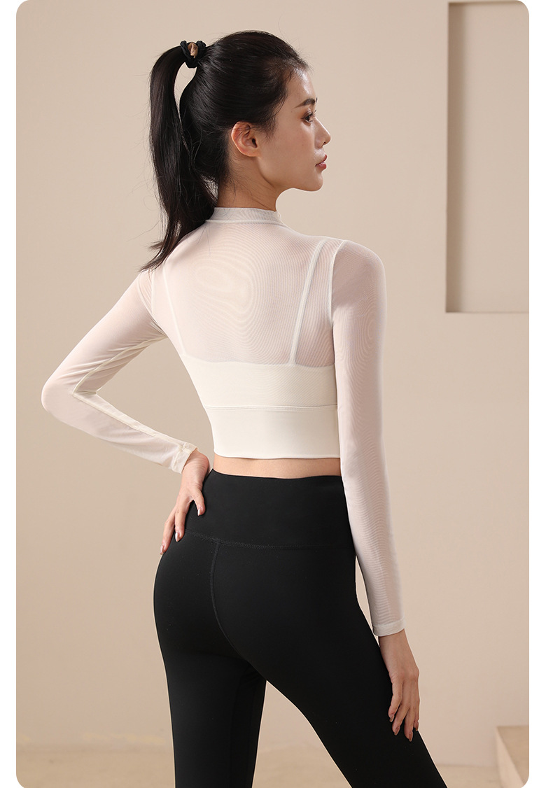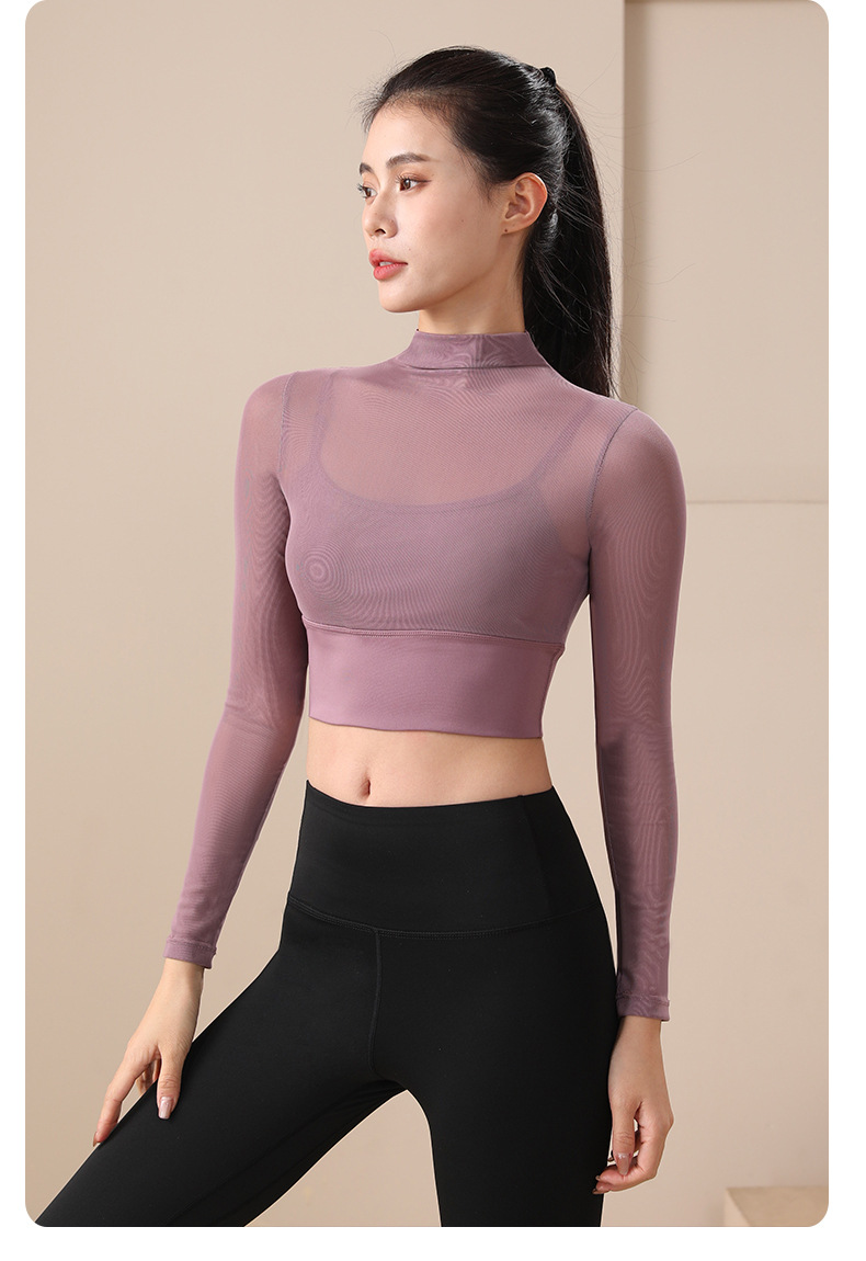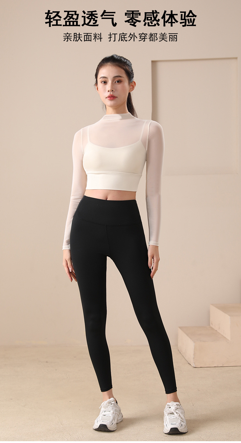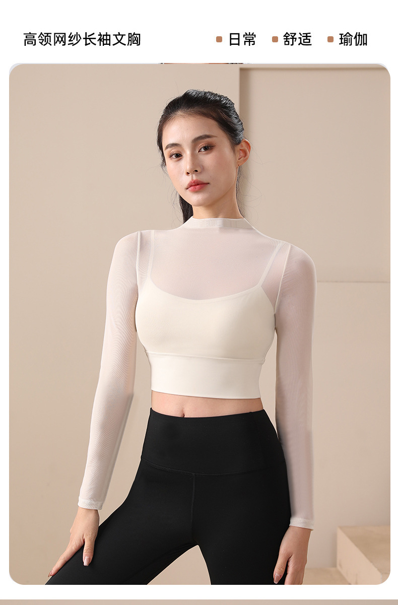 瑜伽服女长袖春秋跑步假两件网纱高级感紧身衣专业健身服运动上衣