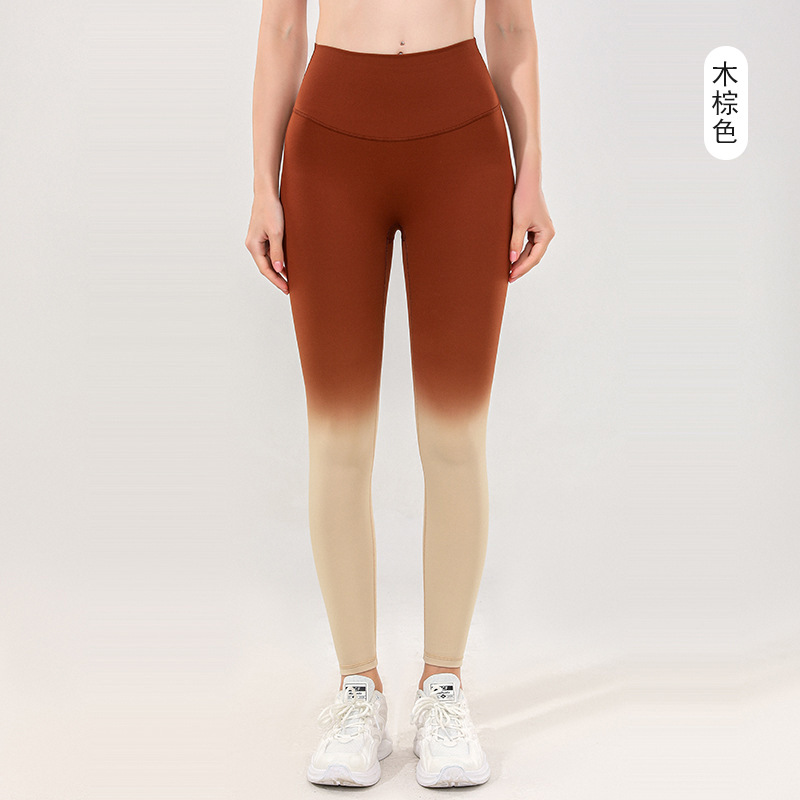 裸感渐变瑜伽裤女高腰收腹双面磨毛蜜桃提臀运动健身紧身裤打底裤