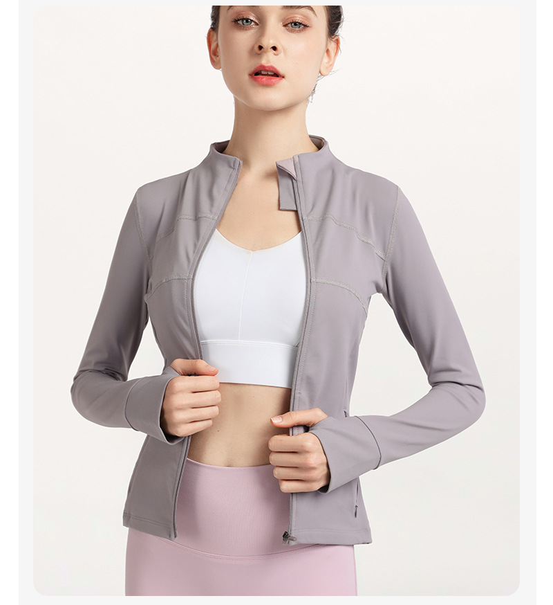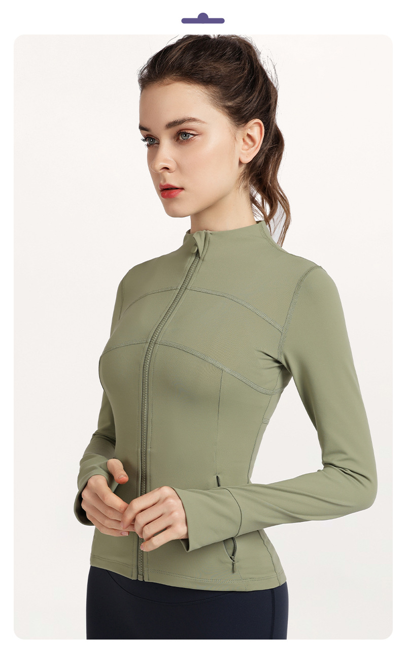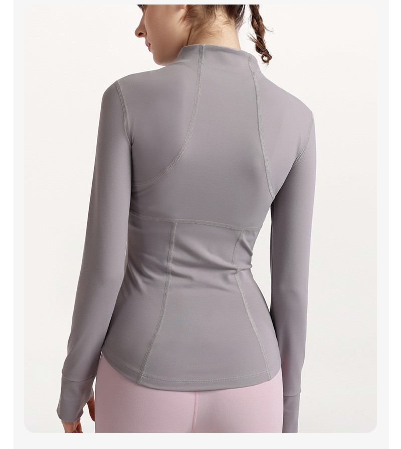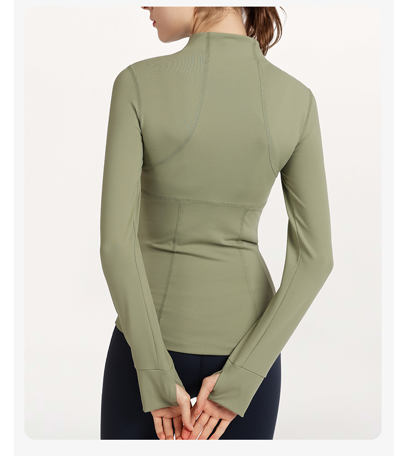 欧美同款秋冬瑜伽服裸感长袖速干健身跑步瑜伽上衣外套运动罩衫女
