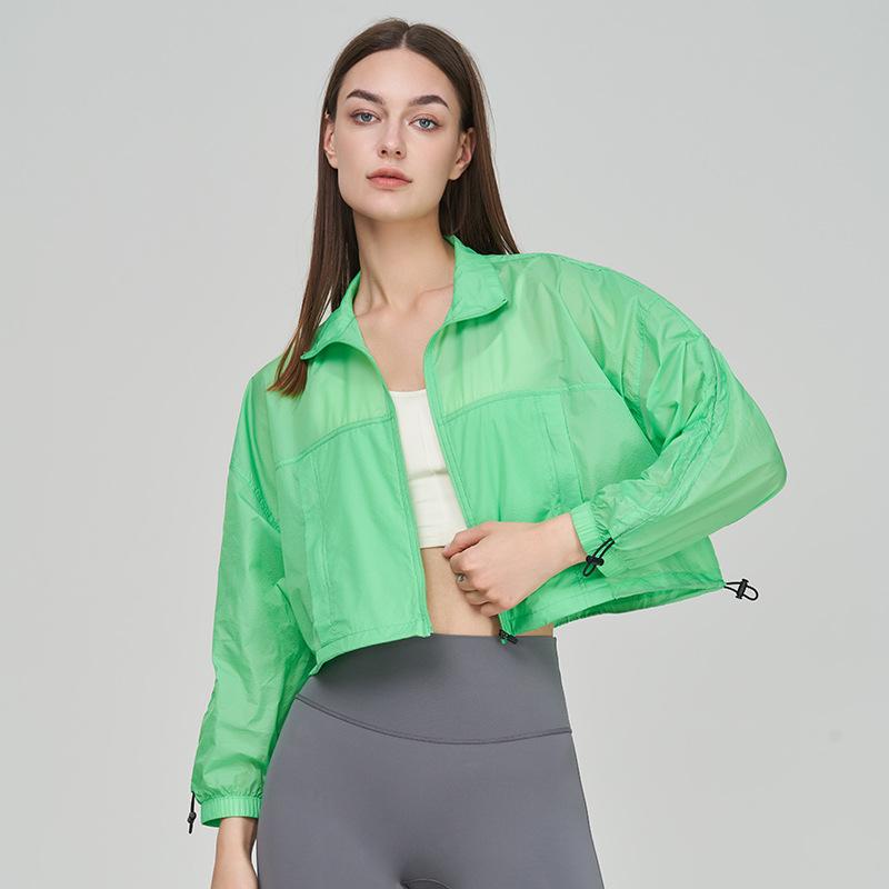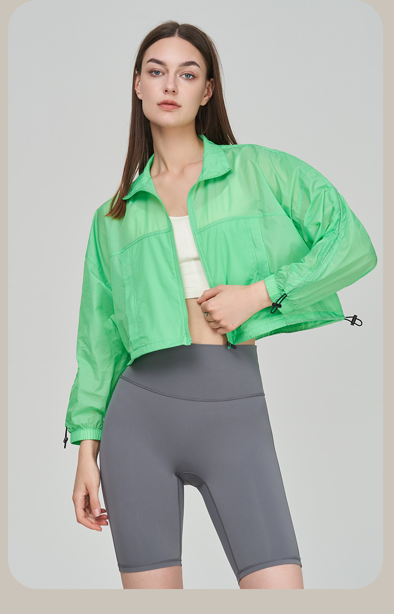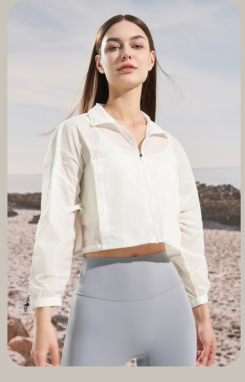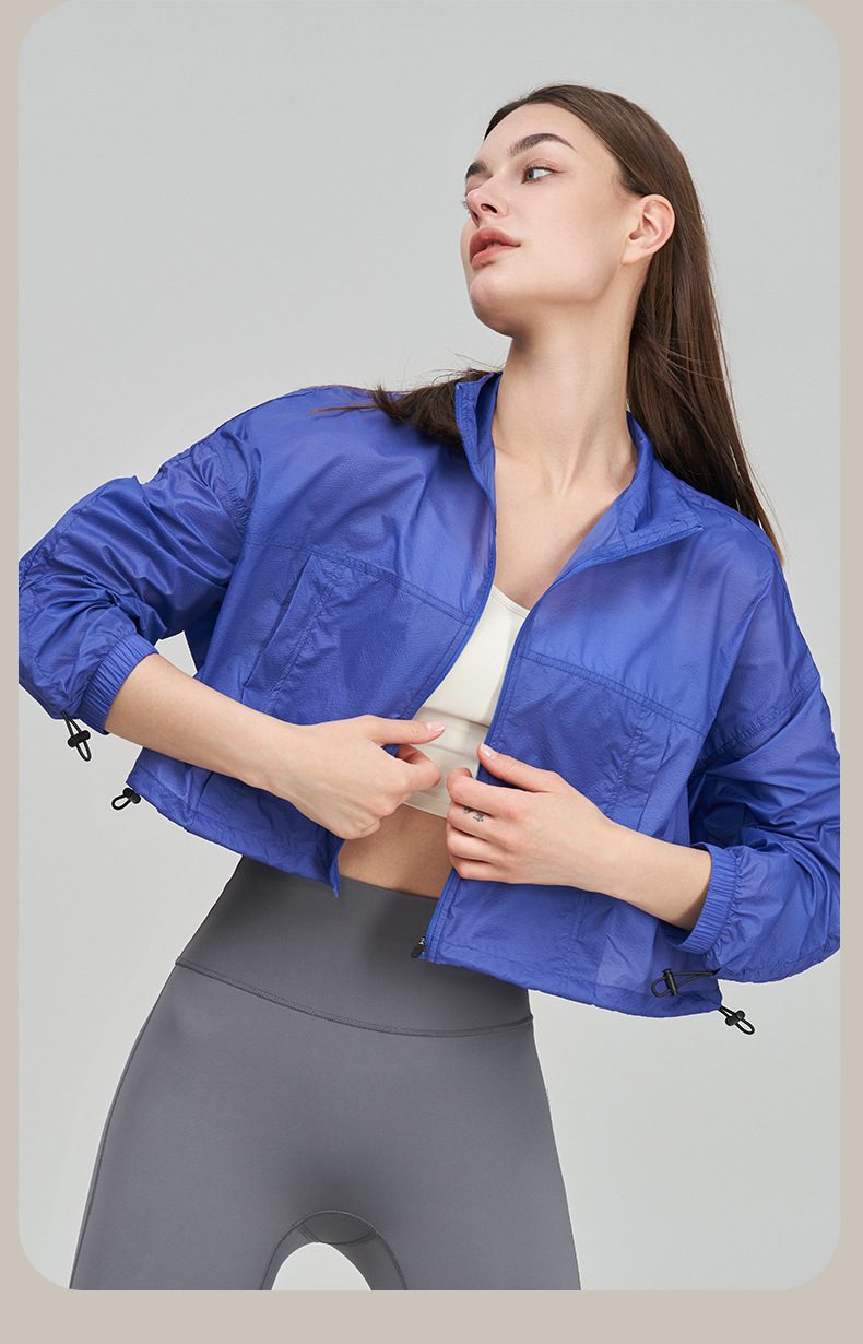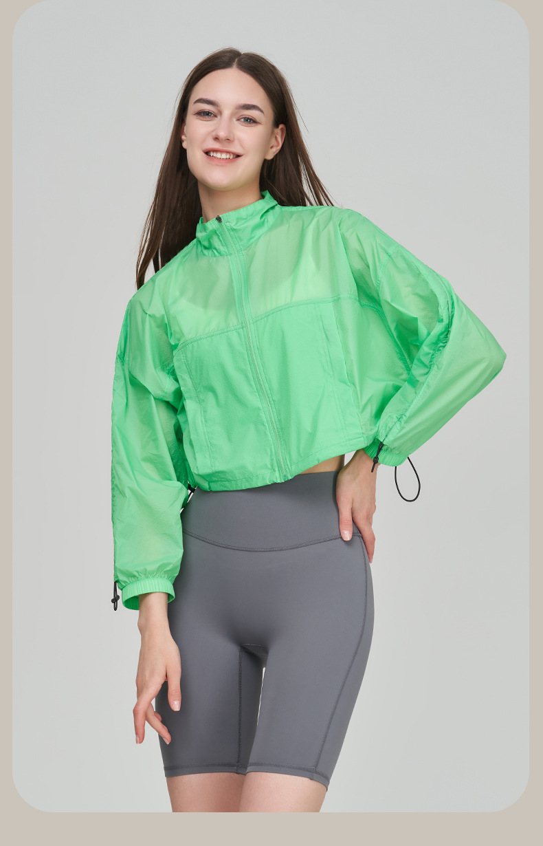 2023春夏防晒衣女士短款运动外套抽绳防紫外线户外糖果防晒瑜伽服