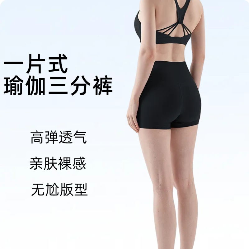 夏季新款三分骑行裤瑜伽裤女裸感透气速干高腰提臀运动健身裤短款