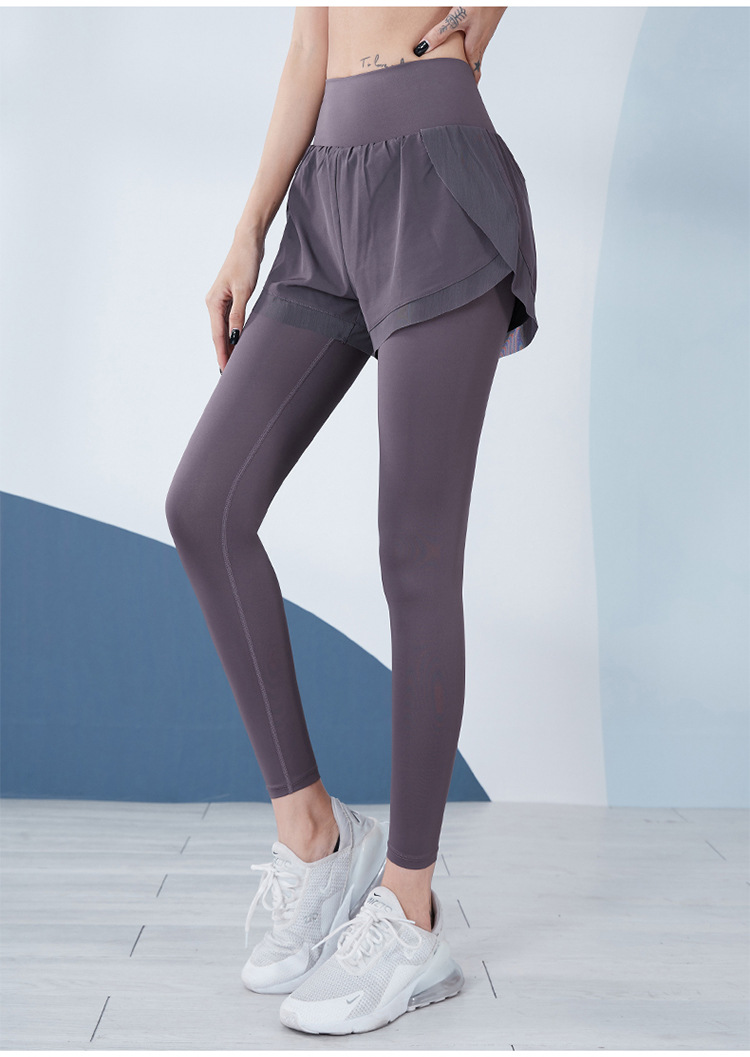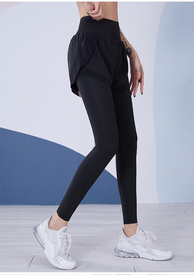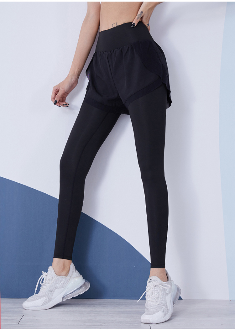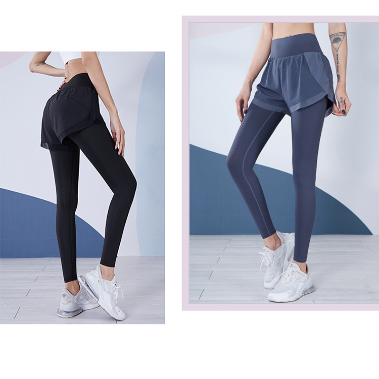 瑜伽裤女高腰收腹假两件紧身长裤专业运动晨跑步骑行速干健身裤