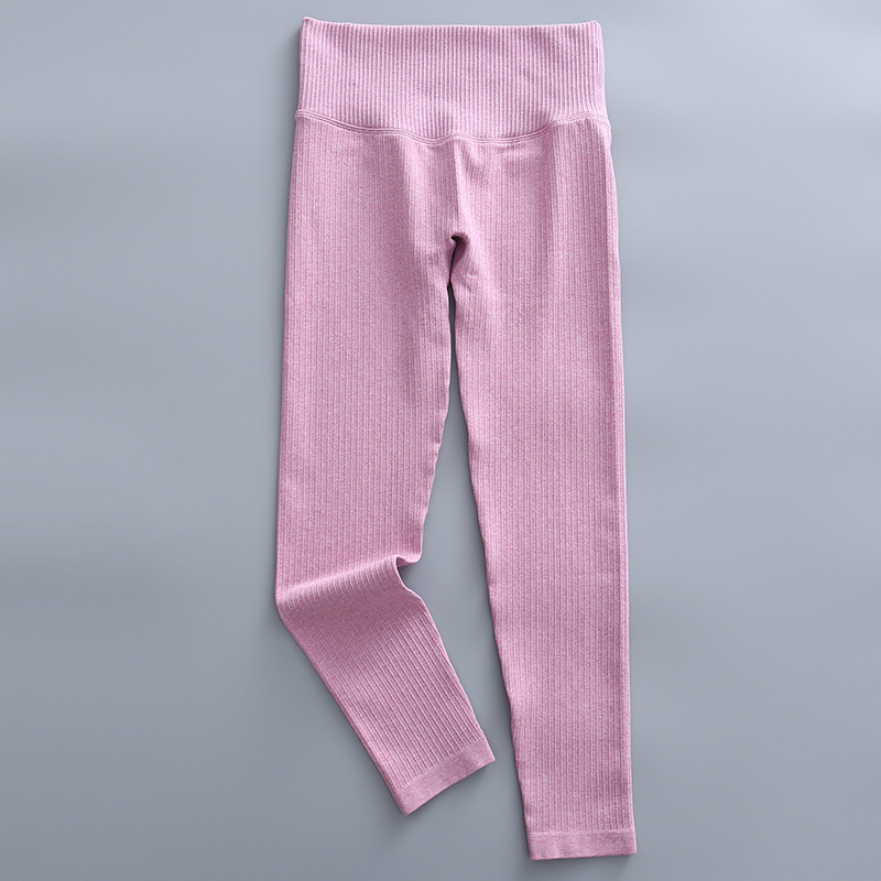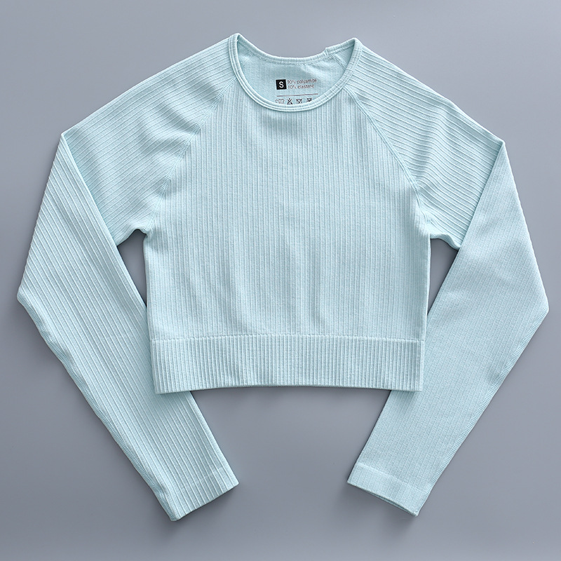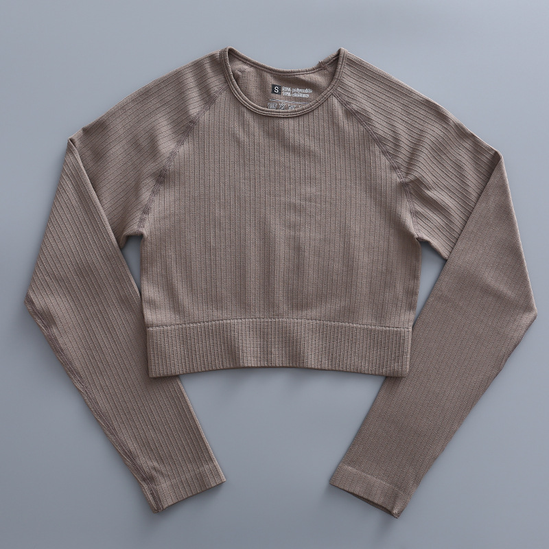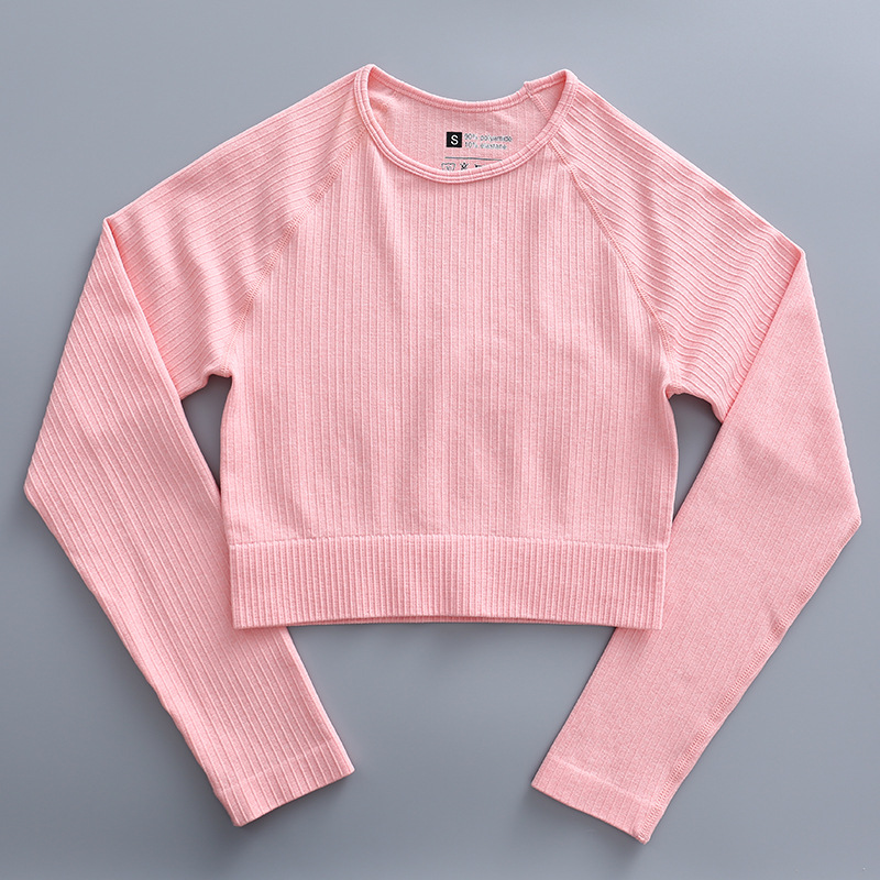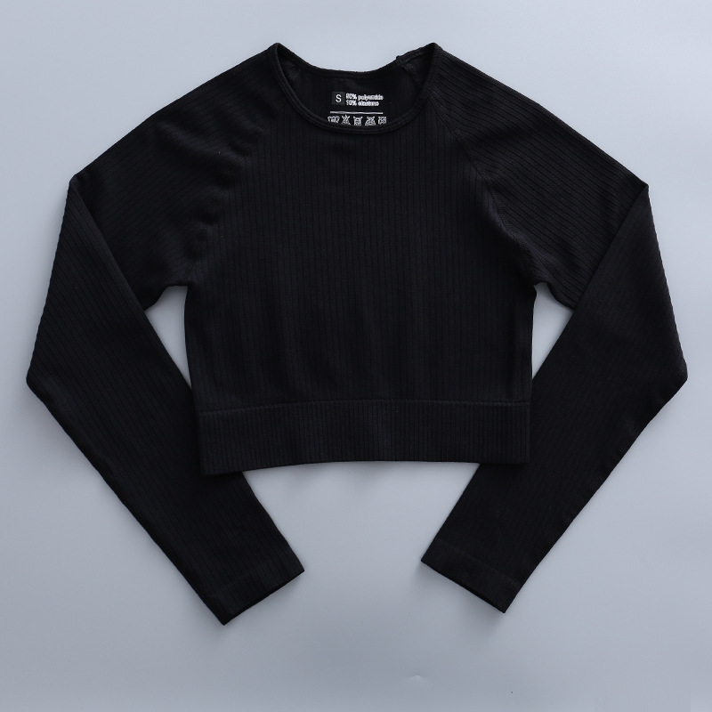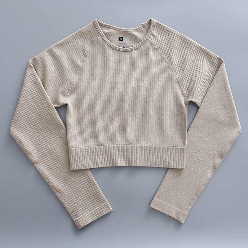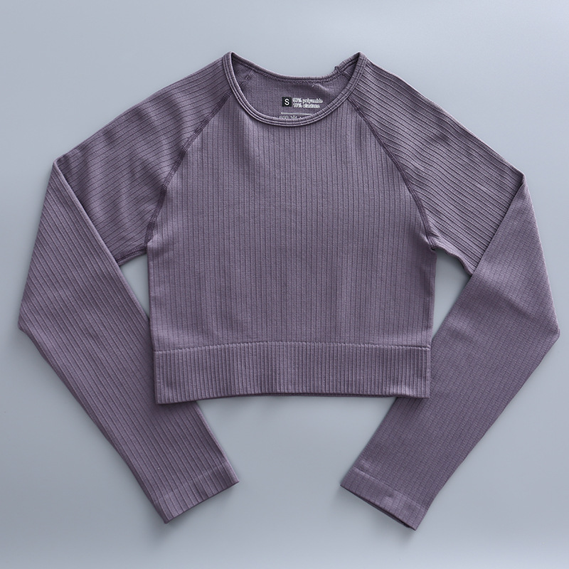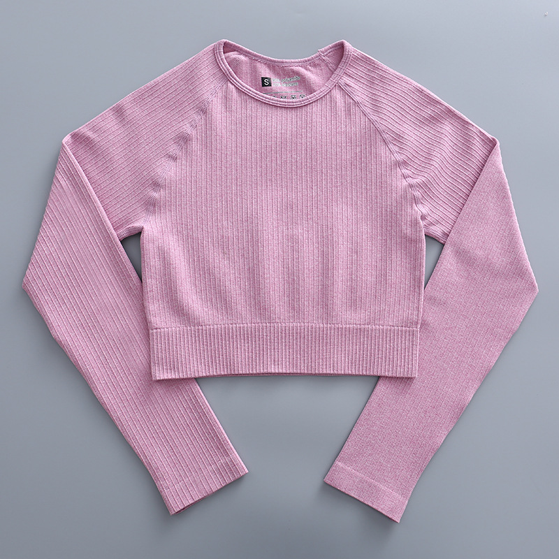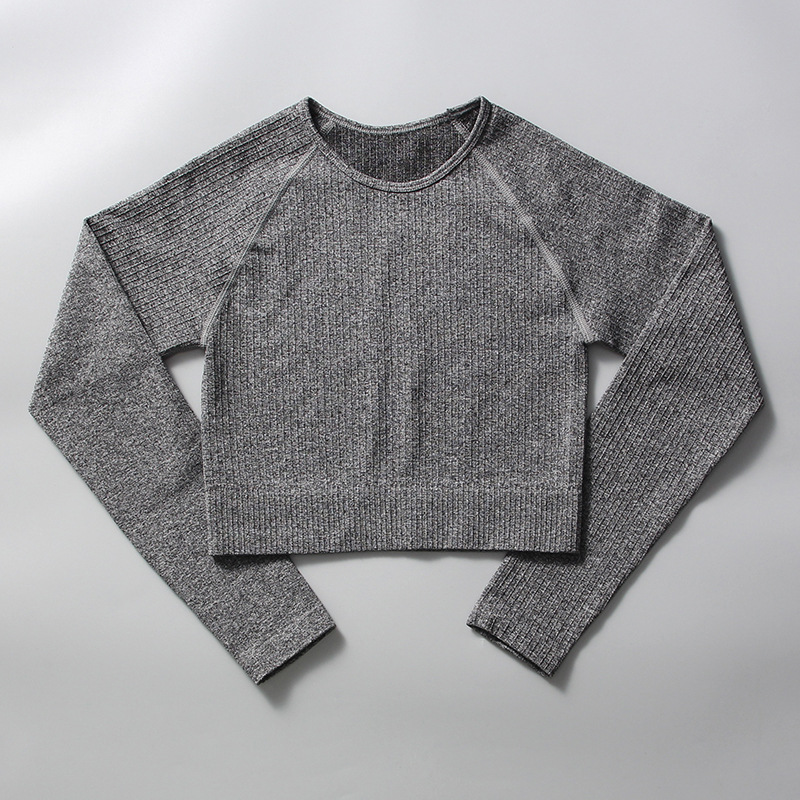 欧美跨境长袖瑜伽服无缝紧身健身服套装女修身罗纹提臀跑步运动服