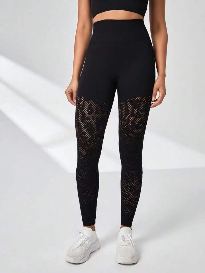 欧美镂空网眼紧身裤提臀高腰收腹健身长裤户外运动速干瑜伽裤女