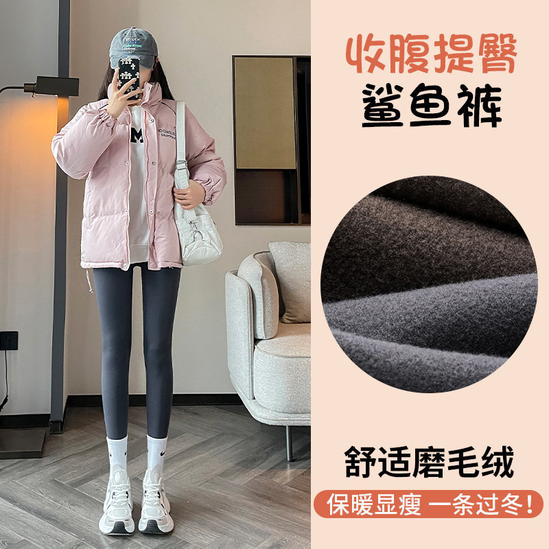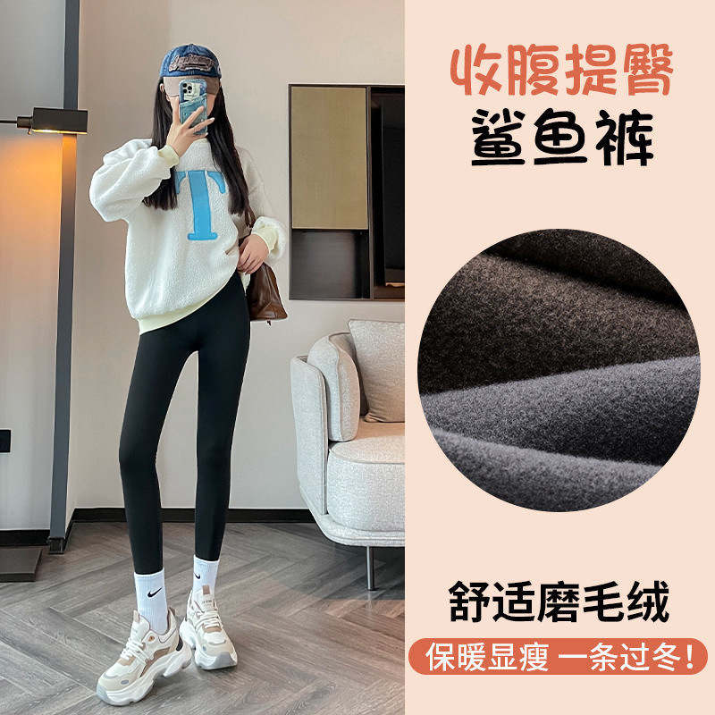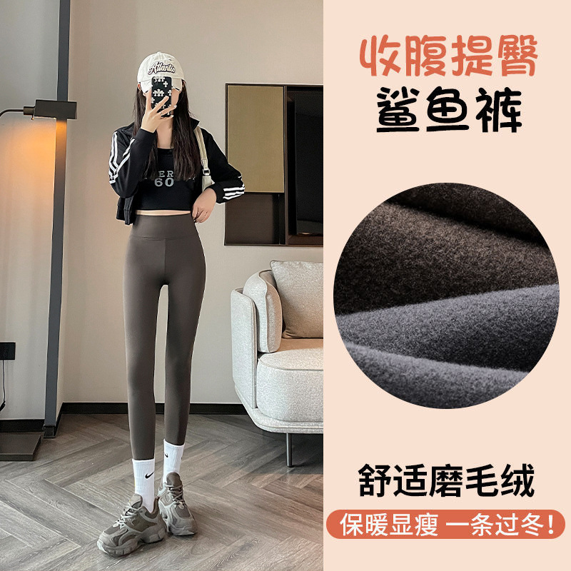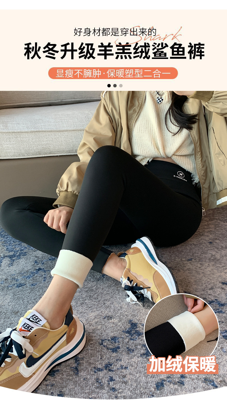加绒加厚鲨鱼裤女外穿秋冬新款哑光无痕瑜伽春秋羊羔绒打底芭比裤