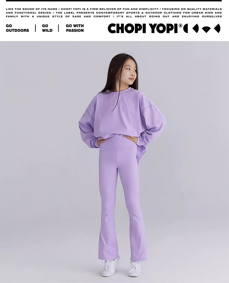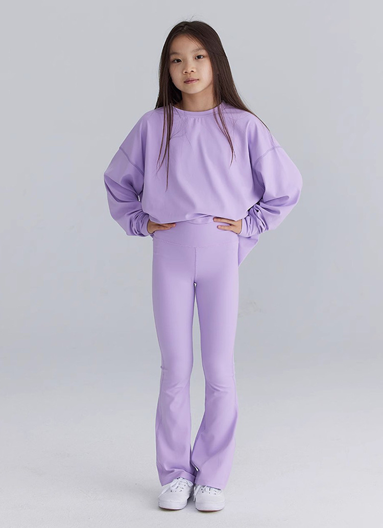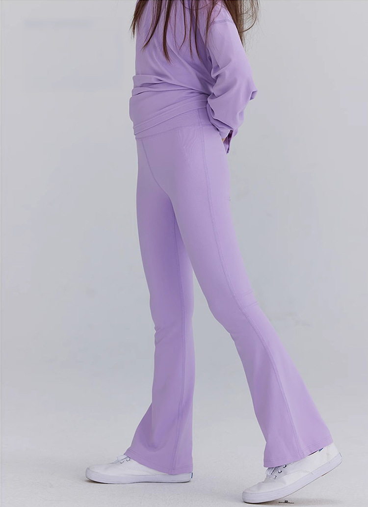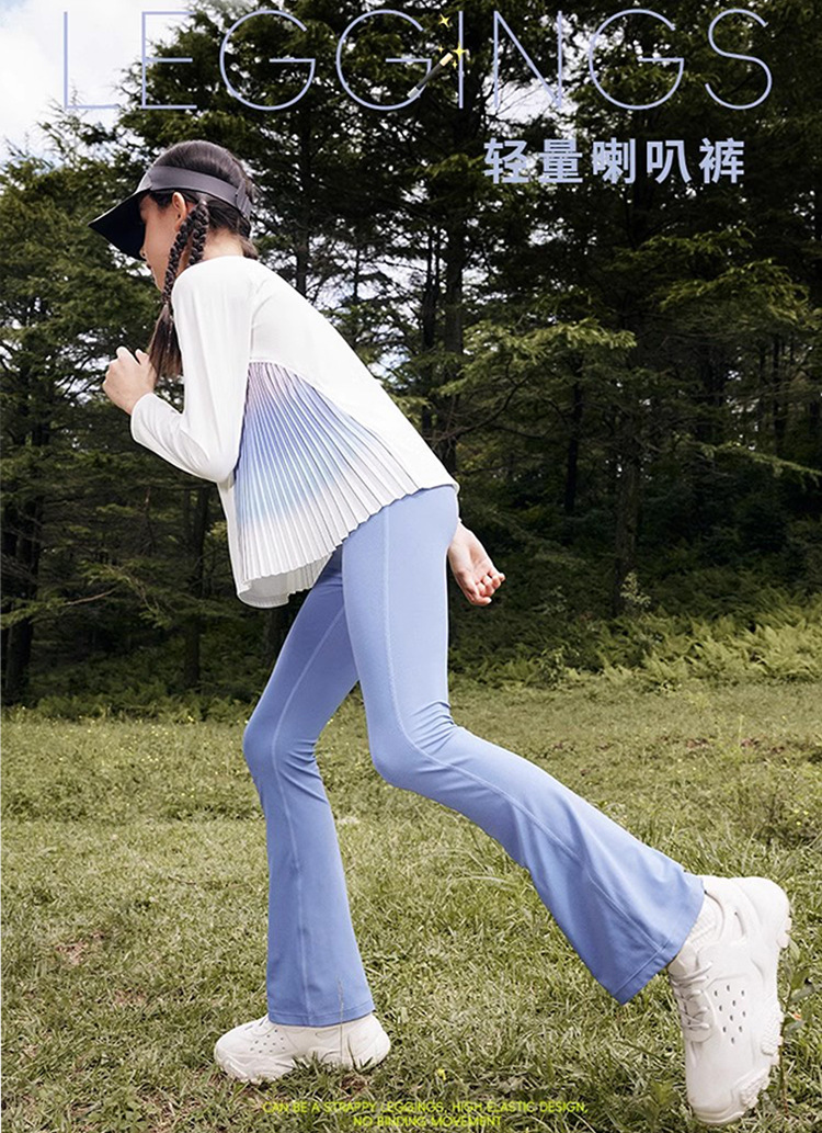 外贸跨境女孩儿童高腰微喇叭瑜伽户外运动滑板骑行紧健身打底长裤