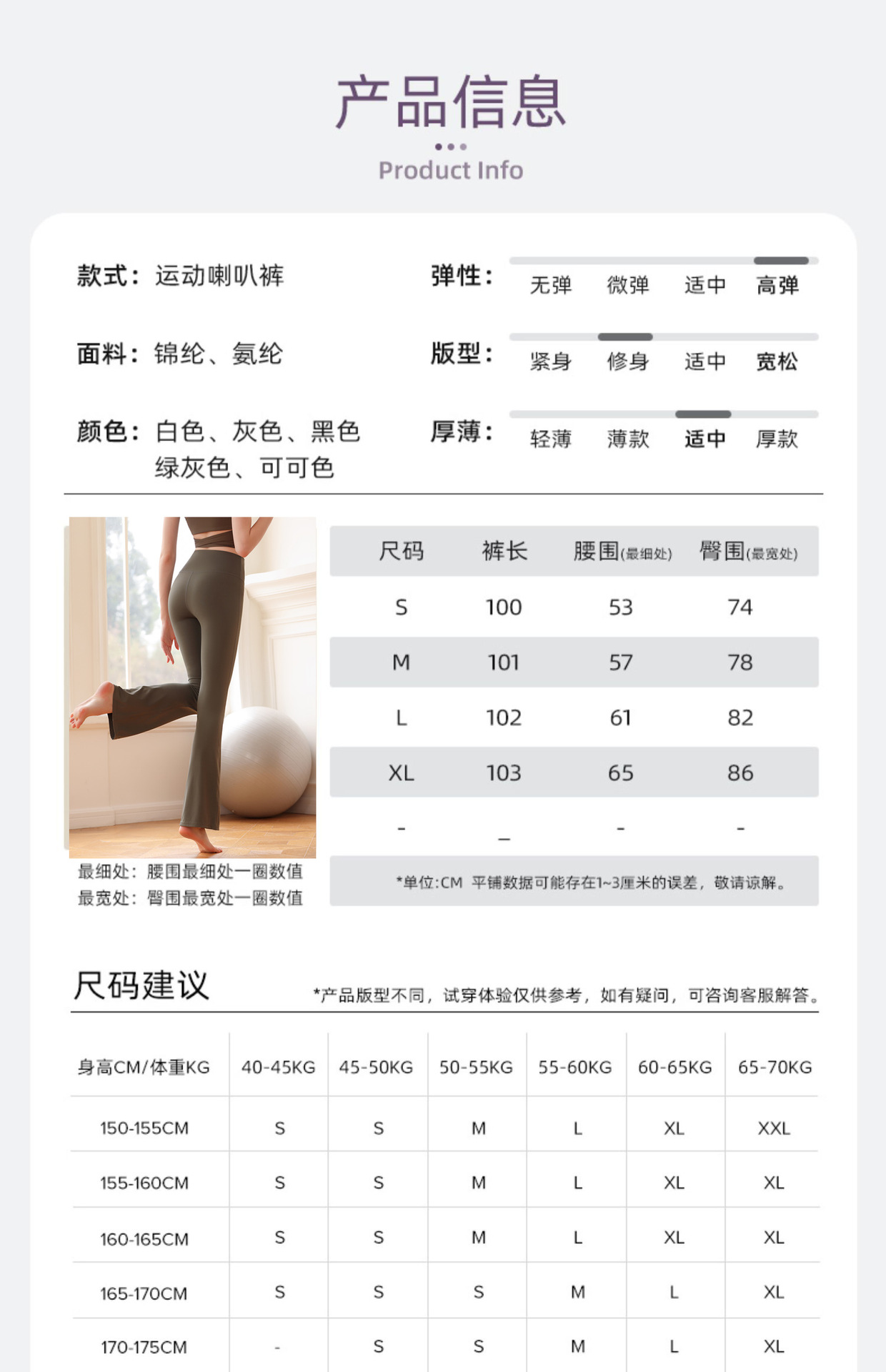 微喇女健身裤无尴尬线紧身提臀高腰显瘦优雅阔腿运动瑜伽喇叭裤