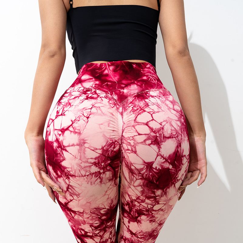 欧美跨境扎染瑜伽裤女高腰提臀运动紧身长裤户外跑步蜜桃臀健身裤