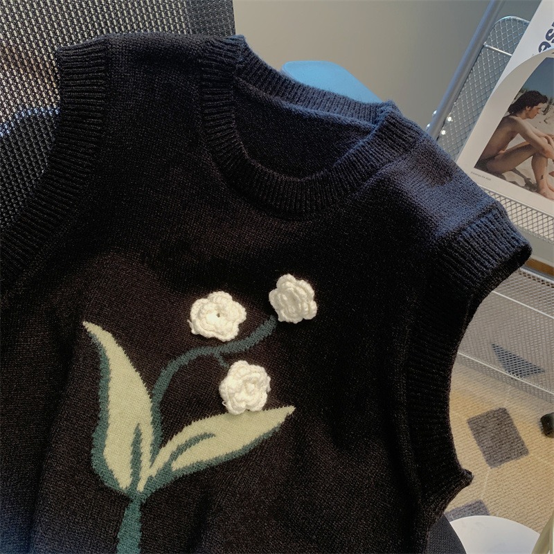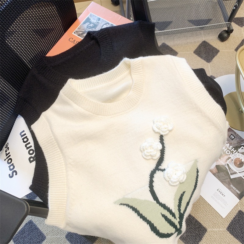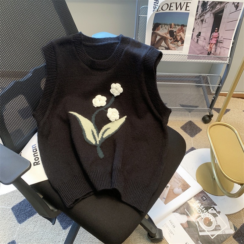 立体钩花甜美针织马甲背心显瘦韩版减龄百搭圆领无袖针织衫毛衣女