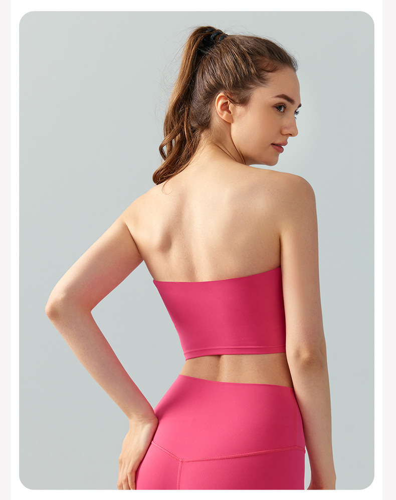 春夏性感抹胸内衣带胸垫女修身显瘦防走光美背运动健身瑜伽服上衣