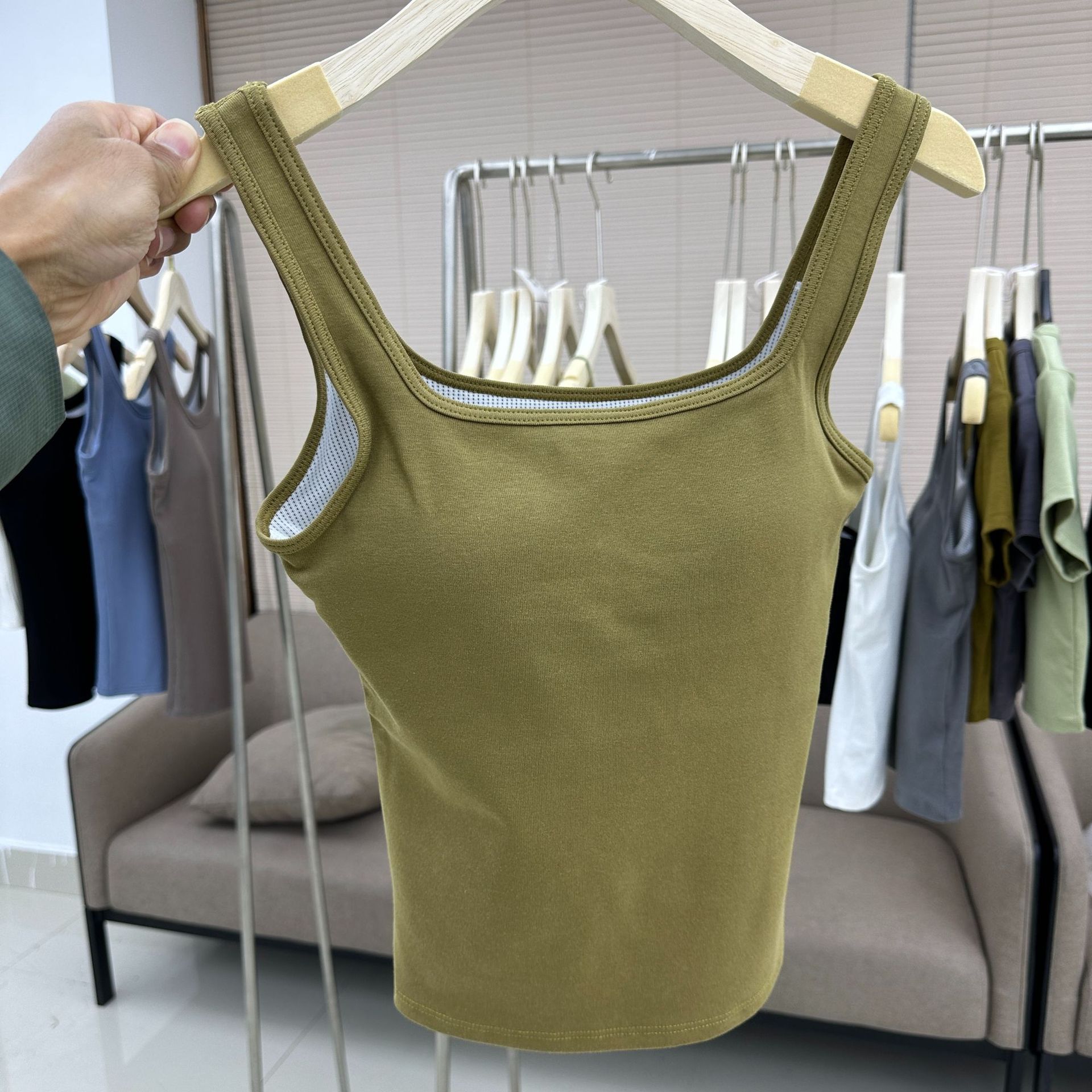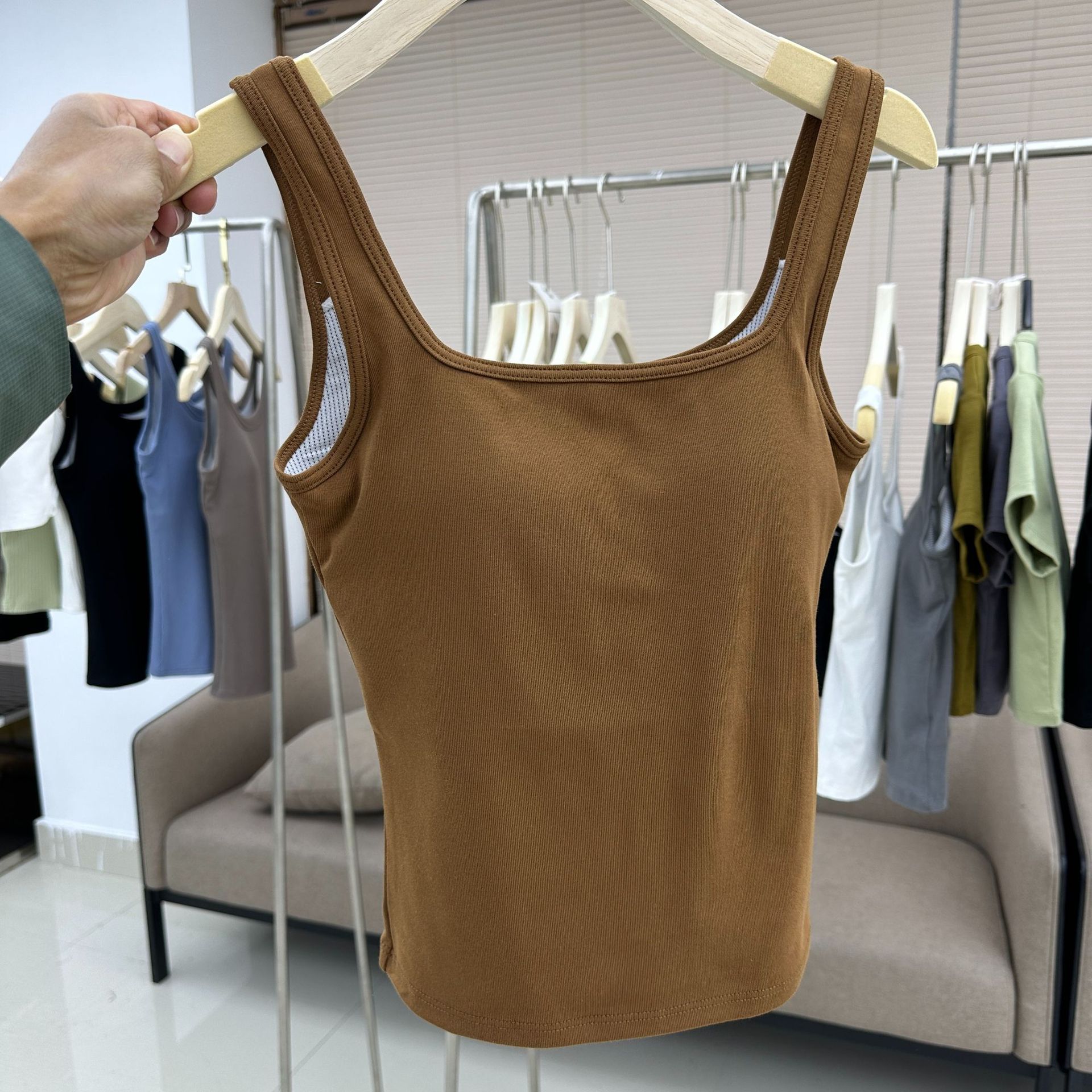 美背带胸垫方领百搭短款背心女外穿无袖吊带防走光打底内搭上衣