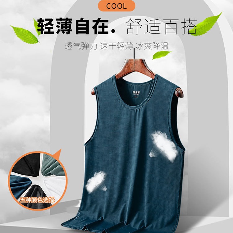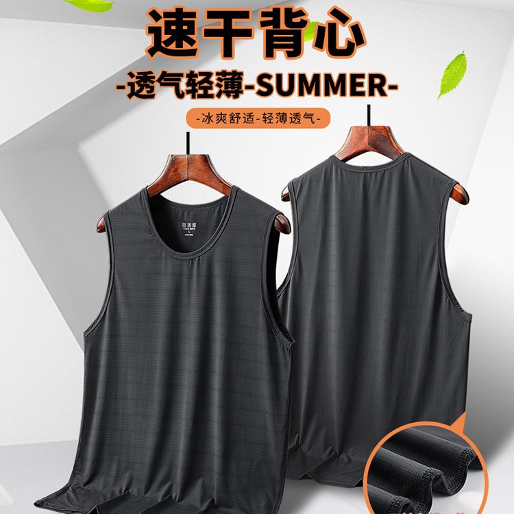 夏季超轻薄透气运动速干上衣跑步健身无袖T恤冰丝弹力大码男背心