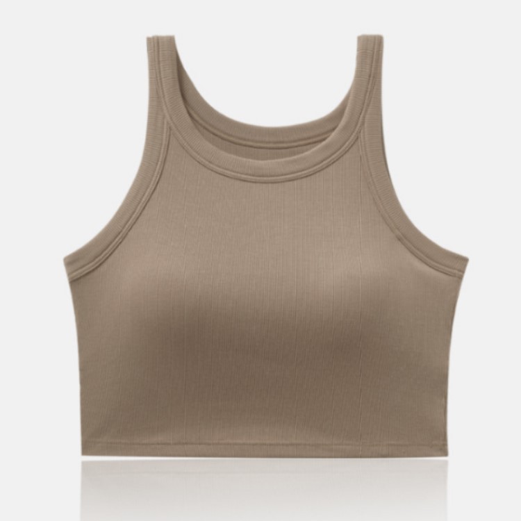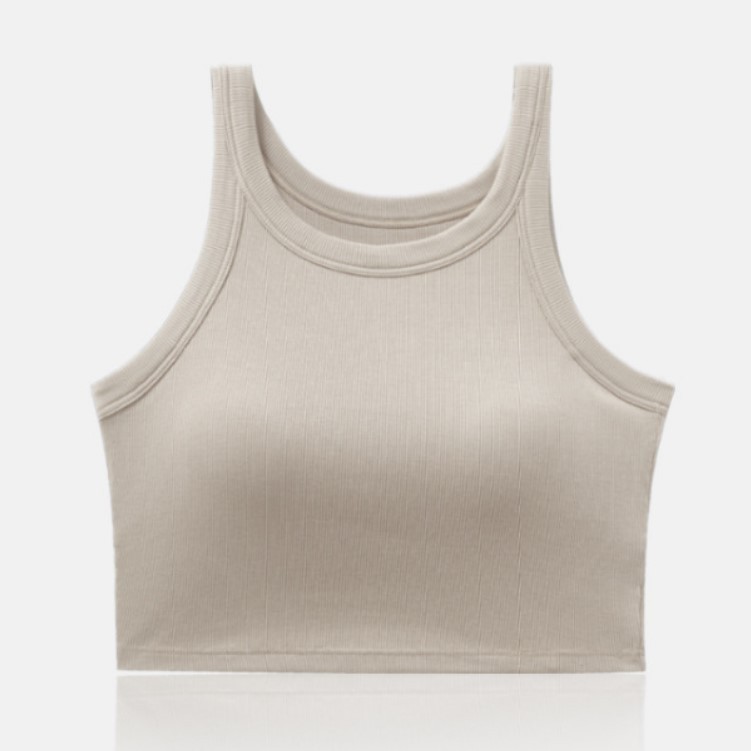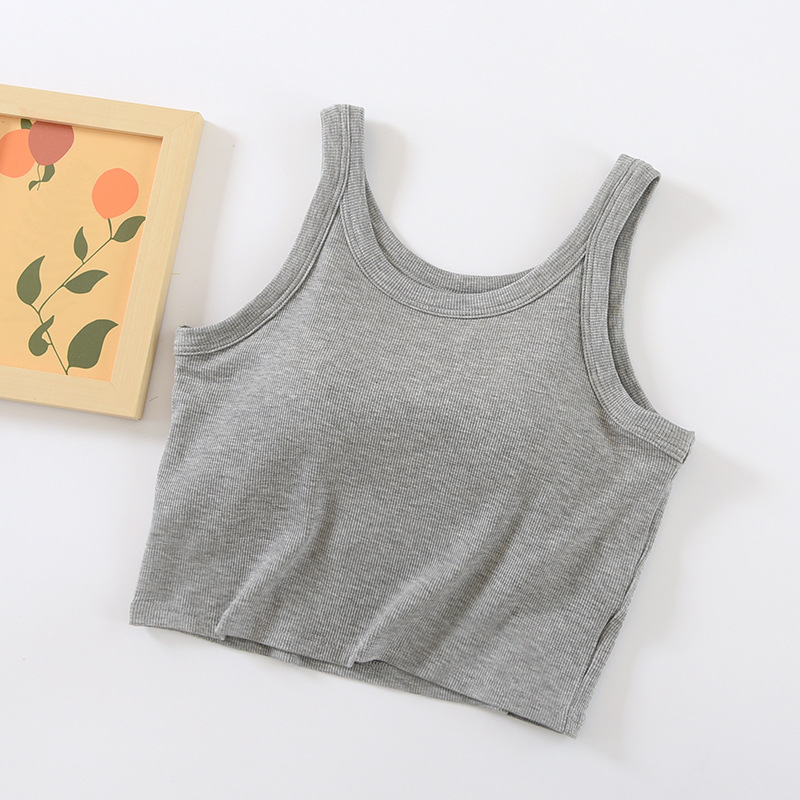 螺纹带胸垫露脐背心短款内搭文胸罩杯一体小吊带内衣女夏无袖打底