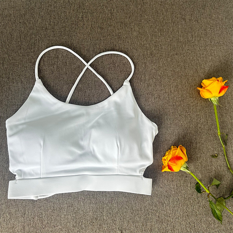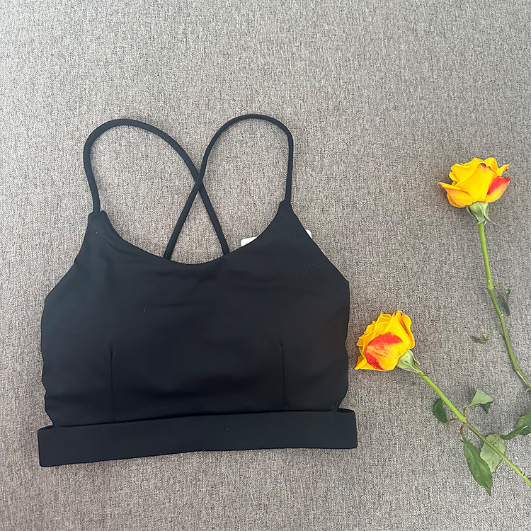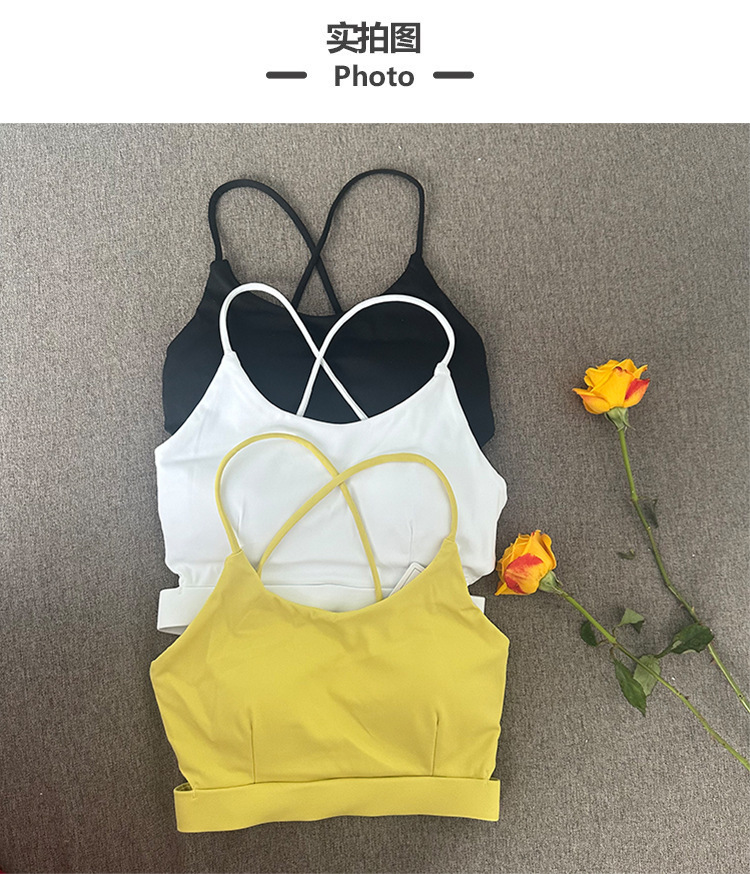 欧美交叉美背瑜伽背心女带胸垫健身房跑步运动文胸速干透气亚马逊
