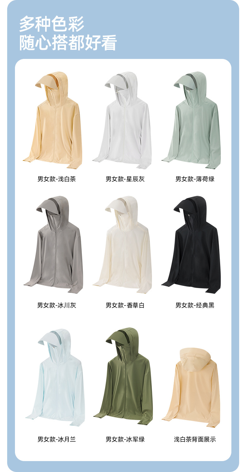 冰丝防晒衣女夏季防紫外线透气宽松大帽檐防晒服男皮肤衣外套批发