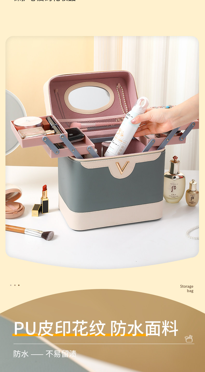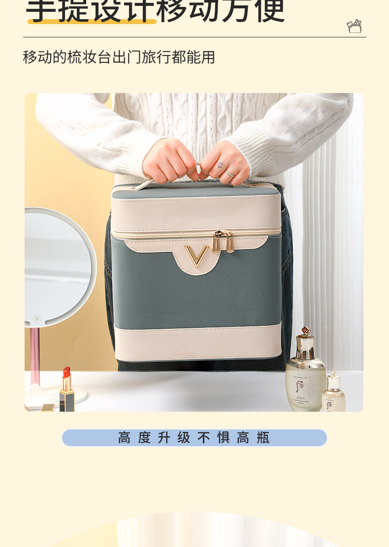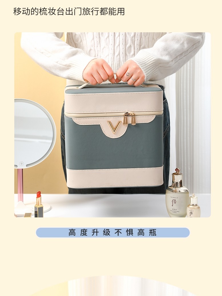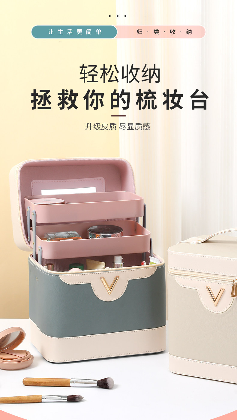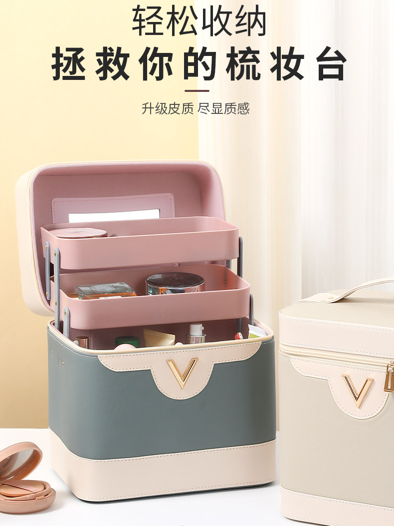 新款撞色轻奢化妆包大容量多功能大号便携化妆品护肤品收纳盒网红